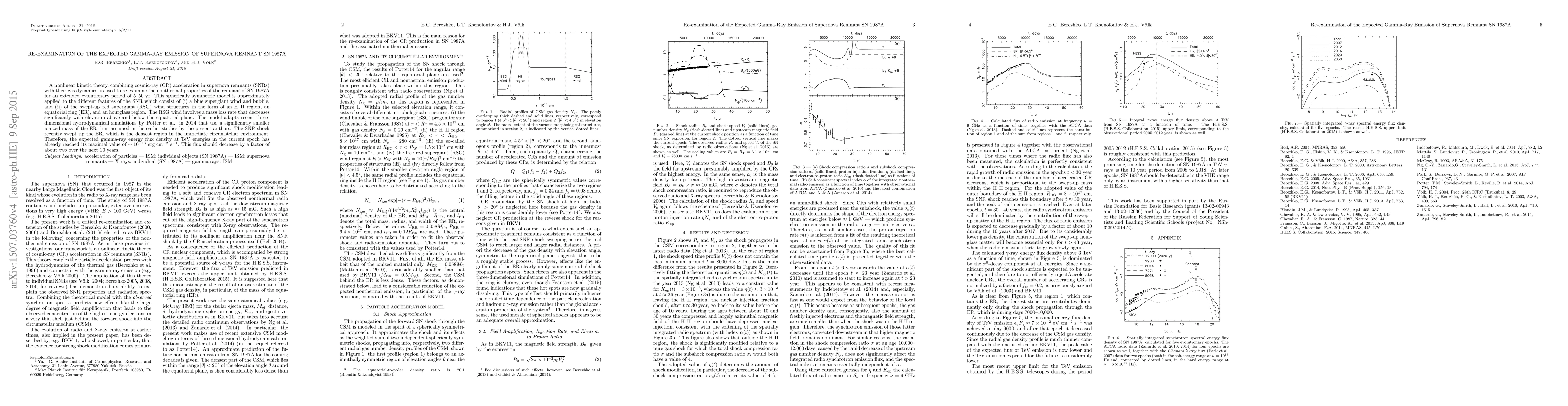 This paper re-examines the expected gamma-ray emission from SN 1987A using a nonlinear kinetic theory that integrates cosmic-ray acceleration with gas dynamics over 5-50 years. The model predicts a peak gamma-ray flux density of $\sim 10^{-13}$ erg cm$^{-2}$ s$^{-1}$ at TeV energies, which is expected to halve over the next decade.