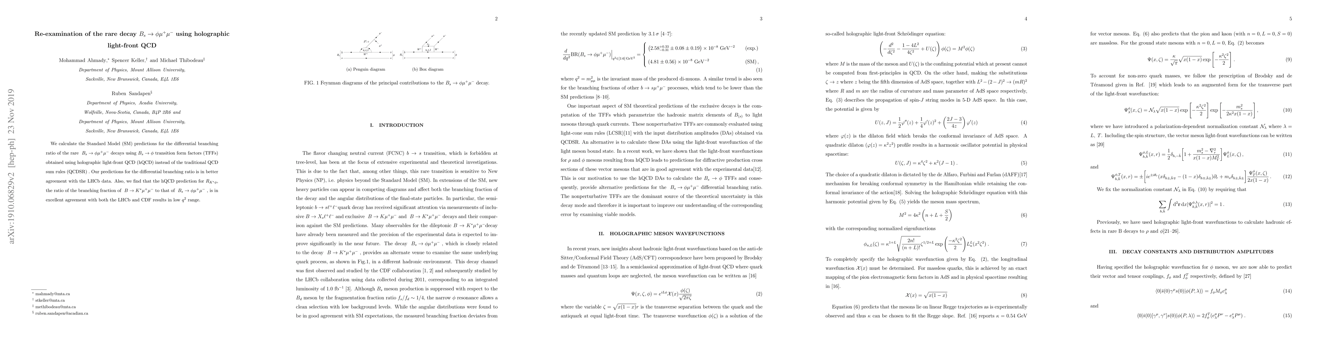 This paper recalculates the Standard Model predictions for the rare decay $B_s \to \phi\mu^+ \mu^-$ using holographic light-front QCD (hQCD) instead of traditional QCD sum rules, finding better agreement with LHCb data and excellent consistency with LHCb and CDF results for the ratio $R_{K^*\phi}$ in the low $q^2$ range.