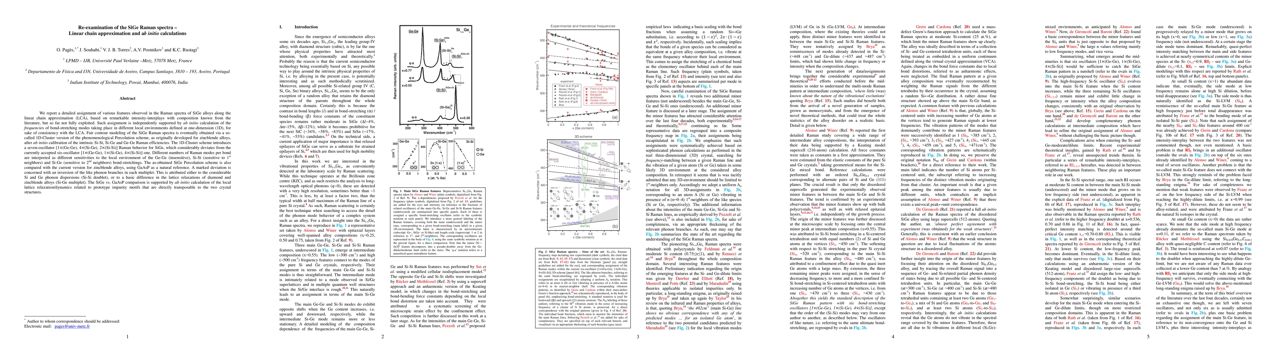 This paper proposes a new linear chain approximation for understanding Raman spectra of Si-Ge alloys, introducing a seven-oscillator model that differs from the traditional six-oscillator model. The new model is supported by ab initio calculations and a 1D-cluster version of the Percolation scheme.