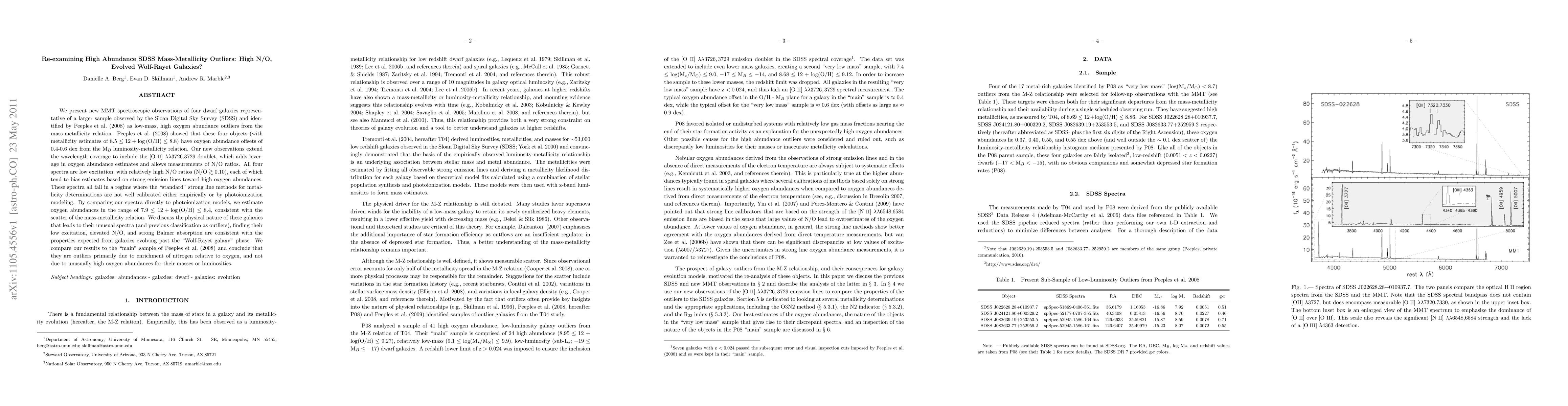 We present new MMT spectroscopic observations of four dwarf galaxies representative of a larger sample observed by the Sloan Digital Sky Survey (SDSS) and identified by Peeples et al. (2008) as low-mass, high oxygen abundance outliers from the mass-metallicity relation. Peeples et al. (2008) showed that these four objects (with metallicity estimates of 8.5 =< 12 + log(O/H) =< 8.8) have oxygen abundance offsets of 0.4-0.6 dex from the M_B luminosity-metallicity relation. Our new observations extend the wavelength coverage to include the [OII] 3726,3729 doublet, which adds leverage in oxygen abundance estimates and allows measurements of N/O ratios. All four spectra are low excitation, with relatively high N/O ratios (N/O >~ 0.10), each of which tend to bias estimates based on strong emission lines toward high oxygen abundances. These spectra all fall in a regime where the "standard" strong line methods for metallicity determinations are not well calibrated either empirically or by photoionization modeling. By comparing our spectra directly to photoionization models, we estimate oxygen abundances in the range of 7.9 =< 12 + log(O/H) =< 8.4, consistent with the scatter of the mass-metallicity relation. We discuss the physical nature of these galaxies that leads to their unusual spectra (and previous classification as outliers), finding their low excitation, elevated N/O, and strong Balmer absorption are consistent with the properties expected from galaxies evolving past the "Wolf-Rayet galaxy" phase. We compare our results to the "main" sample of Peeples et al. (2008) and conclude that they are outliers primarily due to enrichment of nitrogen relative to oxygen, and not due to unusually high oxygen abundances for their masses or luminosities.