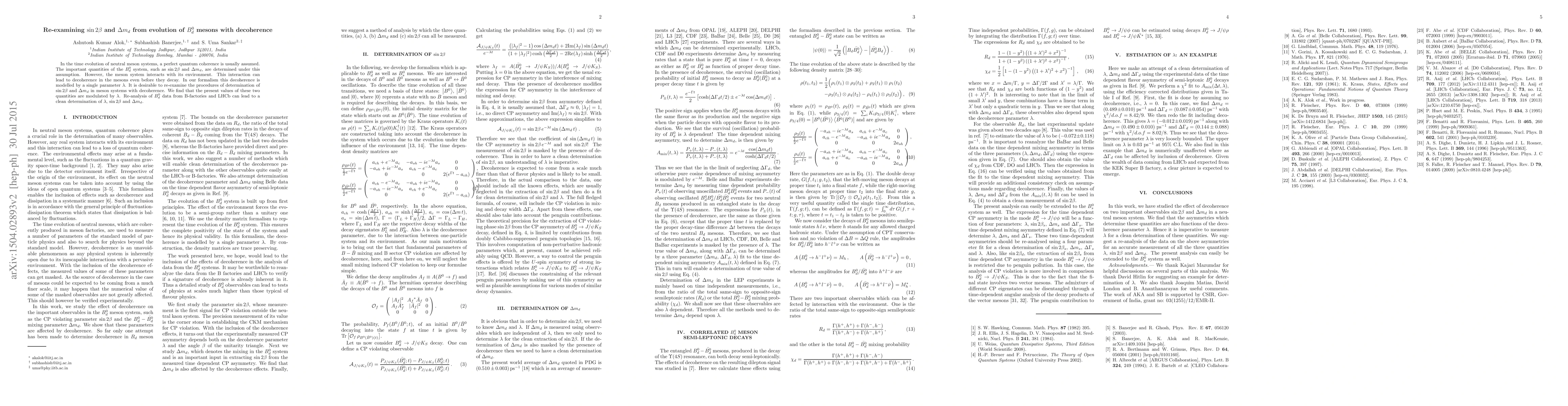 This paper re-examines the determination of sin(2beta) and Delta m(d) in B(d) meson systems, considering the impact of decoherence due to environmental interactions. The study finds that these quantities are modulated by a decoherence parameter lambda, suggesting a re-analysis of B-factories and LHCb data could yield more precise values.