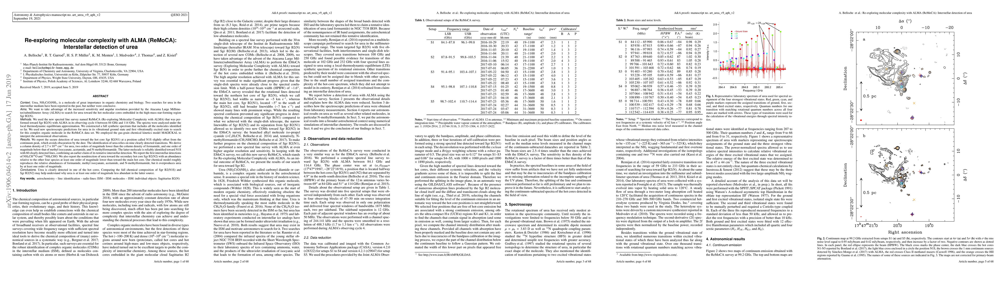 The ALMA ReMoCA survey detected urea in the hot core Sgr B2(N1), confirming its presence in the interstellar medium for the first time, with a column density of 2.7x10^16 cm-2. The chemical model used to interpret the observations overproduces urea relative to other detected organic molecules.