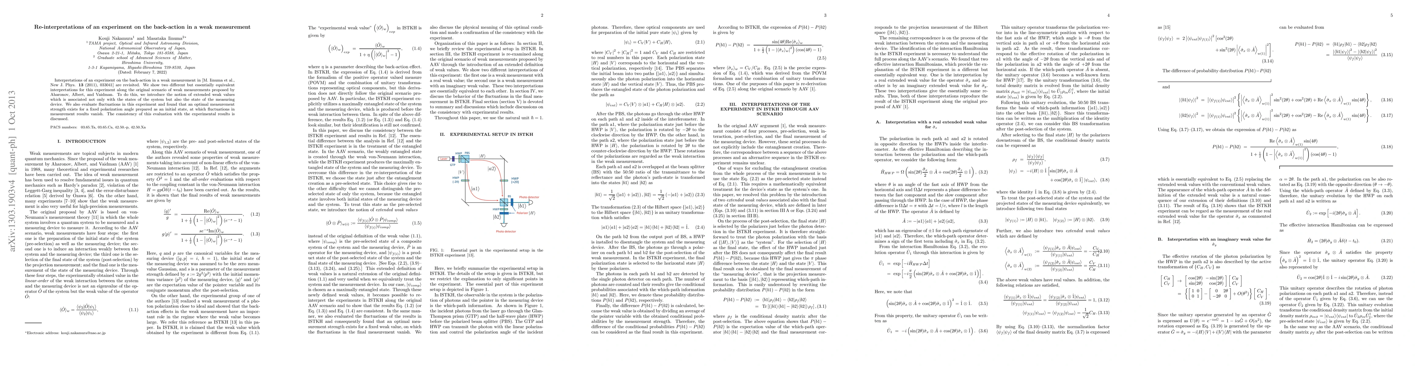 This paper revisits the experiment by M. Iinuma et al. on back-action in weak measurements and proposes two equivalent interpretations within the framework of Aharonov, Albert, and Vaidman. It introduces extended weak values linked to both system and measuring device states, and finds an optimal measurement strength minimizing fluctuations for a given initial polarization angle.