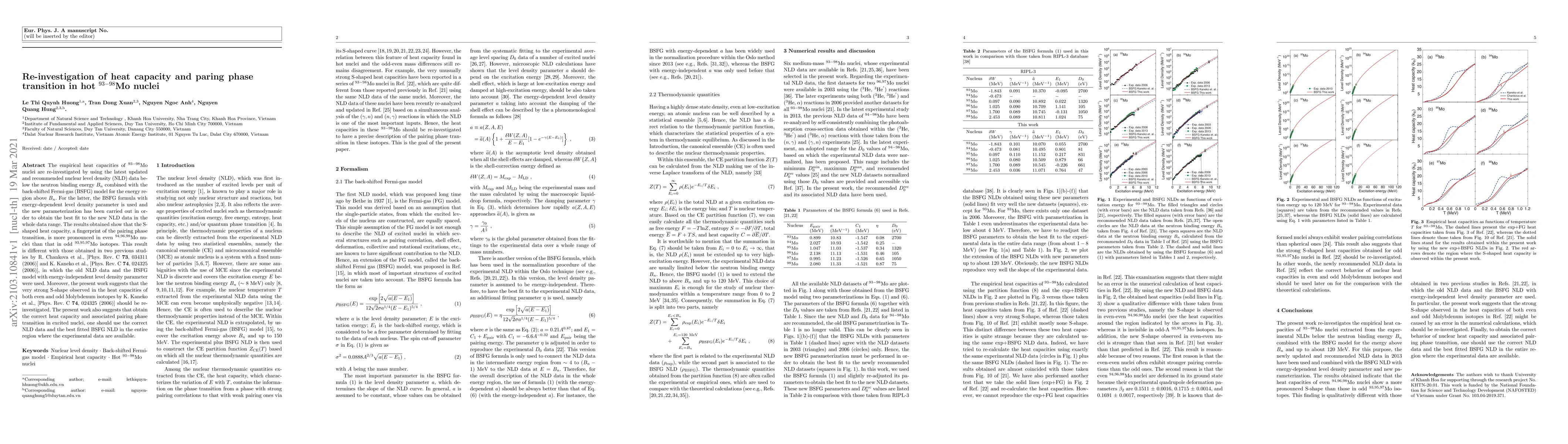 The empirical heat capacities of $^{93-98}$Mo nuclei are re-investigated by using the latest updated and recommended nuclear level density (NLD) data below the neutron binding energy $B_n$ combined with the back-shifted Fermi-gas (BSFG) model for the energy region above $B_n$. For the latter, the BSFG formula with energy-dependent level density parameter is used and the new parameterization has been carried out in order to obtain the best fit to the new NLD data in the whole data range. The results obtained show that the S-shaped heat capacity, a fingerprint of the pairing phase transition, is more pronounced in even $^{94,96,98}$Mo nuclei than that in odd $^{93,95,97}$Mo isotopes. This result is different with those obtained in two previous studies by R. Chankova et al., [Phys. Rev. C {\bf 73}, 034311 (2006)] and K. Kaneko et al., [Phys. Rev. C {\bf 74}, 024325 (2006)], in which the old NLD data and the BSFG model with energy-independent level density parameter were used. Moreover, the present work suggests that the very strong S-shape observed in the heat capacities of both even and odd Molybdenum isotopes by K. Kaneko et al., [Phys. Rev. C {\bf 74}, 024325 (2006)] should be re-investigated. The present work also suggests that obtain the correct heat capacity and associated pairing phase transition in excited nuclei, one should use the correct NLD data and the best fitted BSFG NLD in the entire region where the experimental data are available.