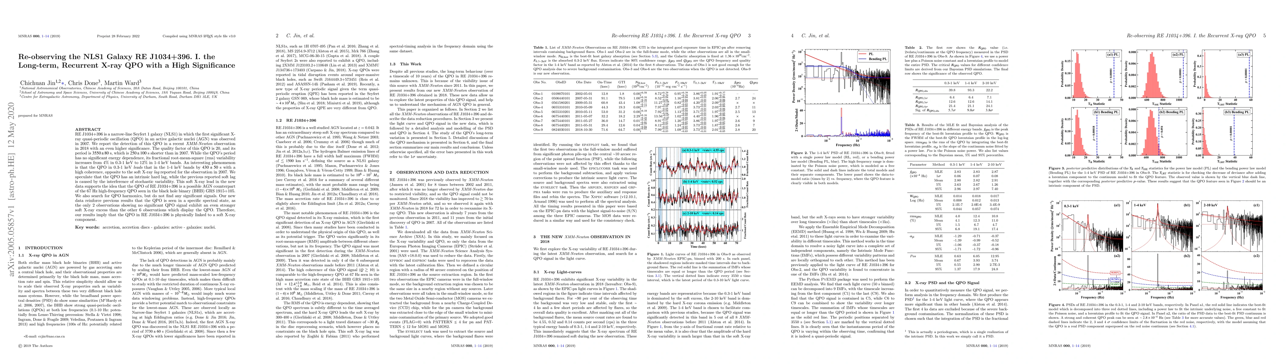 This paper reports the re-observation of the X-ray quasi-periodic oscillation (QPO) in the narrow-line Seyfert 1 galaxy RE J1034+396, detected with higher significance in 2018 compared to 2007. The QPO period has decreased, and its variability shows an intrinsic hard lag, suggesting a possible AGN counterpart to the high-frequency QPO in black hole binaries.