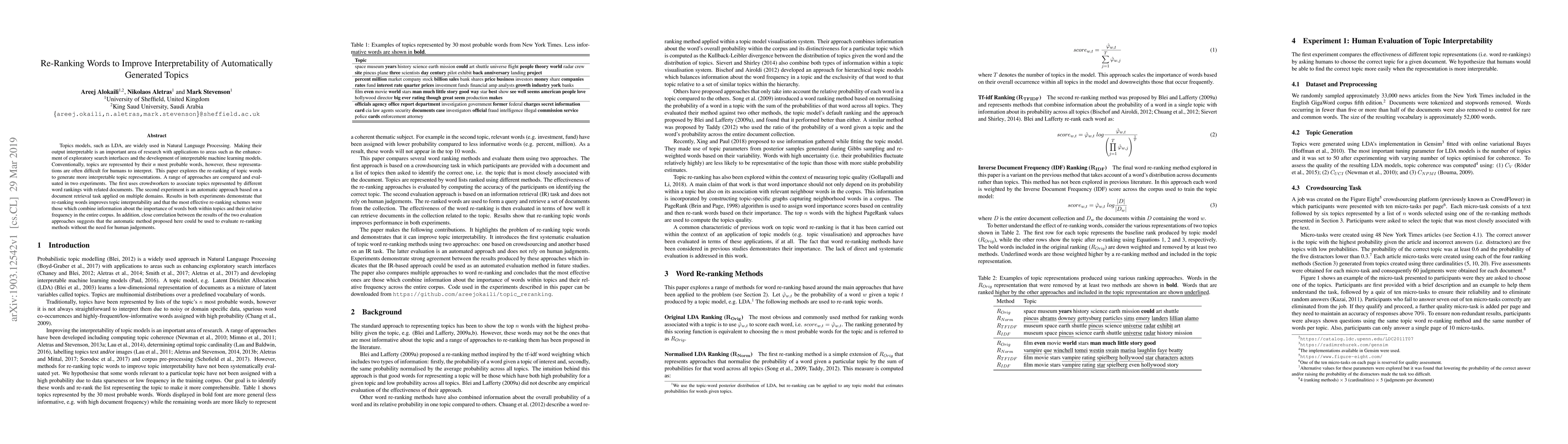 The approach combined information about word importance within topics and their corpus-wide frequency, offering a potential solution for enhancing exploratory search interfaces and interpretable machine learning models.