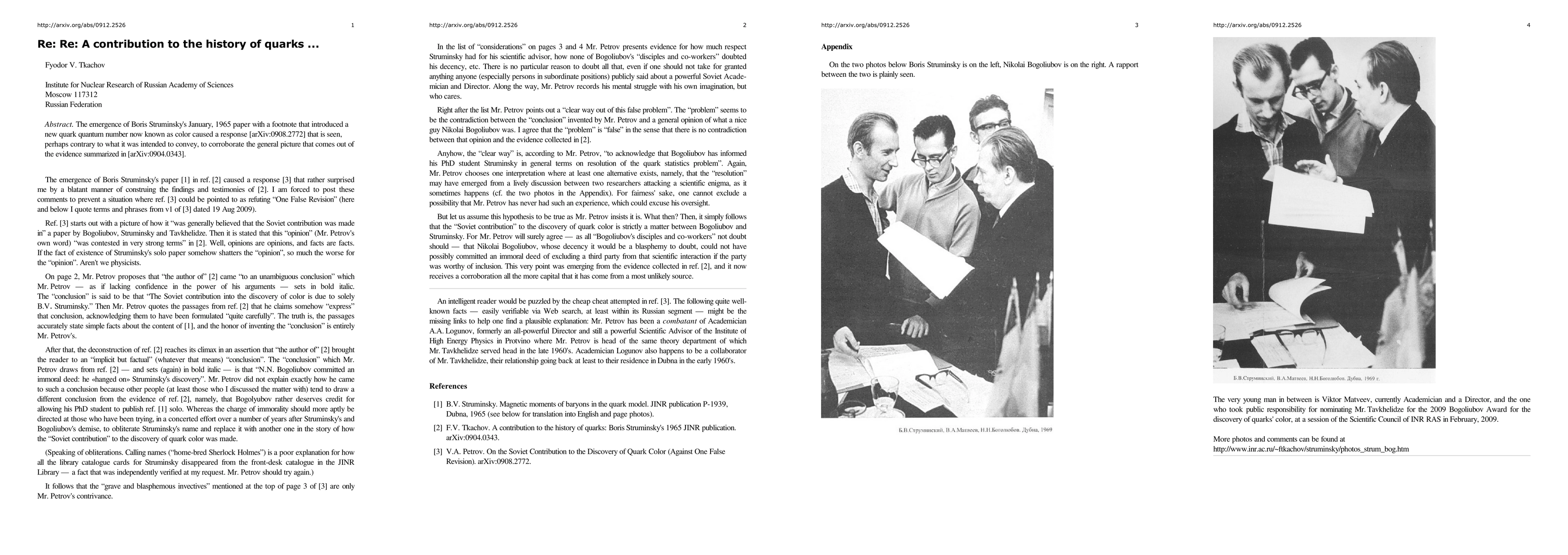 The emergence of Boris Struminsky's January, 1965 paper with a footnote that introduced a new quark quantum number now known as color caused a response [arXiv:0908.2772] that is seen, perhaps contrary to what it was intended to convey, to corroborate the general picture that comes out of the evidence summarized in [arXiv:0904.0343].