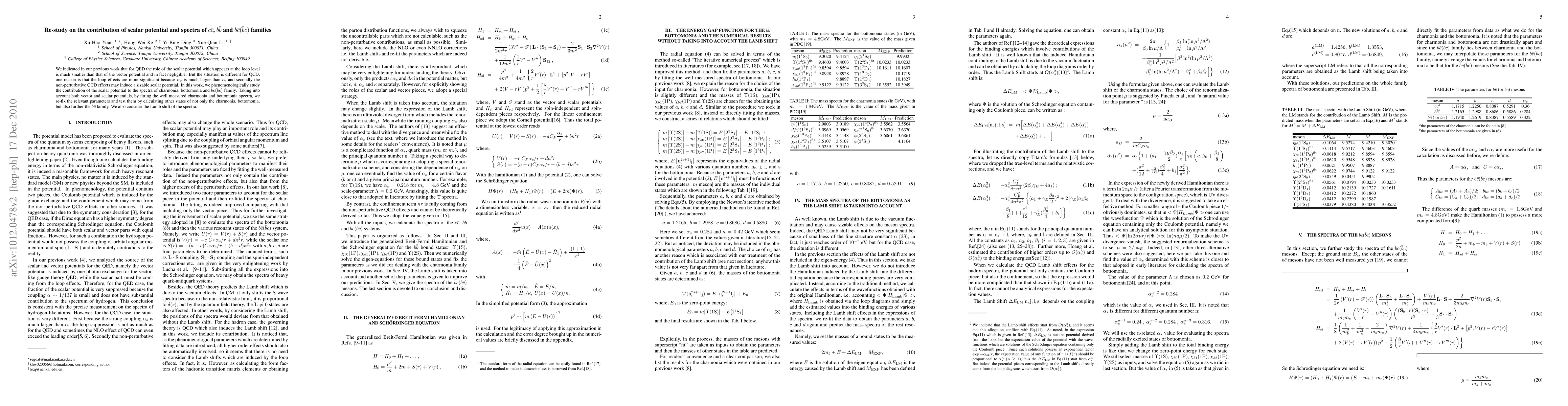 We indicated in our previous work that for QED the role of the scalar potential which appears at the loop level is much smaller than that of the vector potential and in fact negligible. But the situation is different for QCD, one reason is that the loop effects are more significant because $\alpha_s$ is much larger than $\alpha$, and secondly the non-perturbative QCD effects may induce a sizable scalar potential. In this work, we phenomenologically study the contribution of the scalar potential to the spectra of charmonia, bottomonia and $b\bar c(\bar b c)$ family. Taking into account both vector and scalar potentials, by fitting the well measured charmonia and bottomonia spectra, we re-fix the relevant parameters and test them by calculating other states of not only the charmonia, bottomonia, but also further the $b\bar c$ family. We also consider the Lamb shift of the spectra.