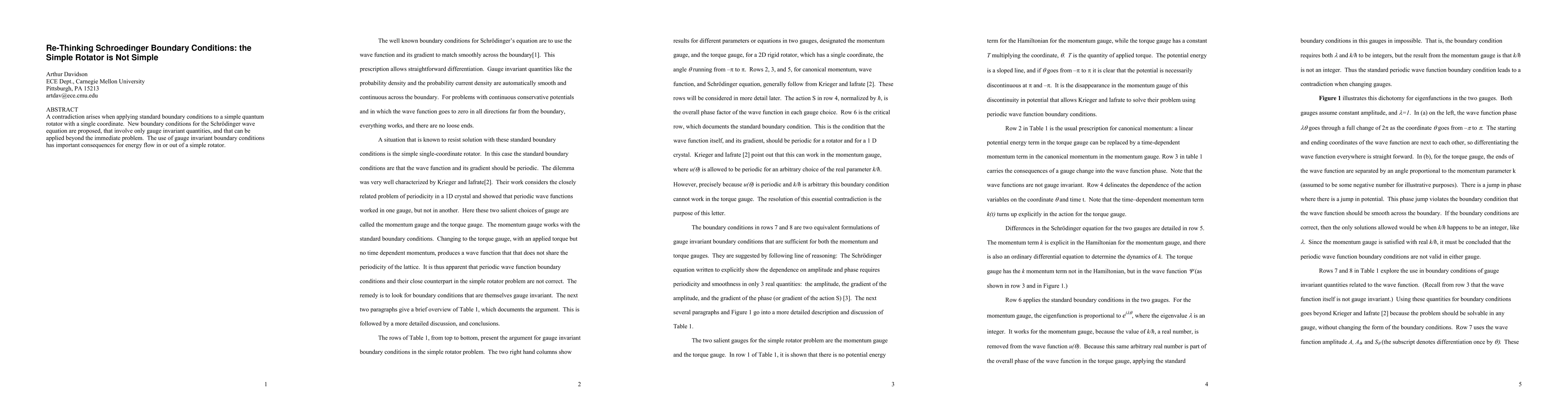 A contradiction arises when applying standard boundary conditions to a simple quantum rotator with a single coordinate. New boundary conditions for the Schroedinger equation are proposed that involve only gauge invariant quantities, and that can be applied beyond the immediate problem. The use of gauge invariant boundary conditions has important consequence for energy flow in or out of a simple rotator.