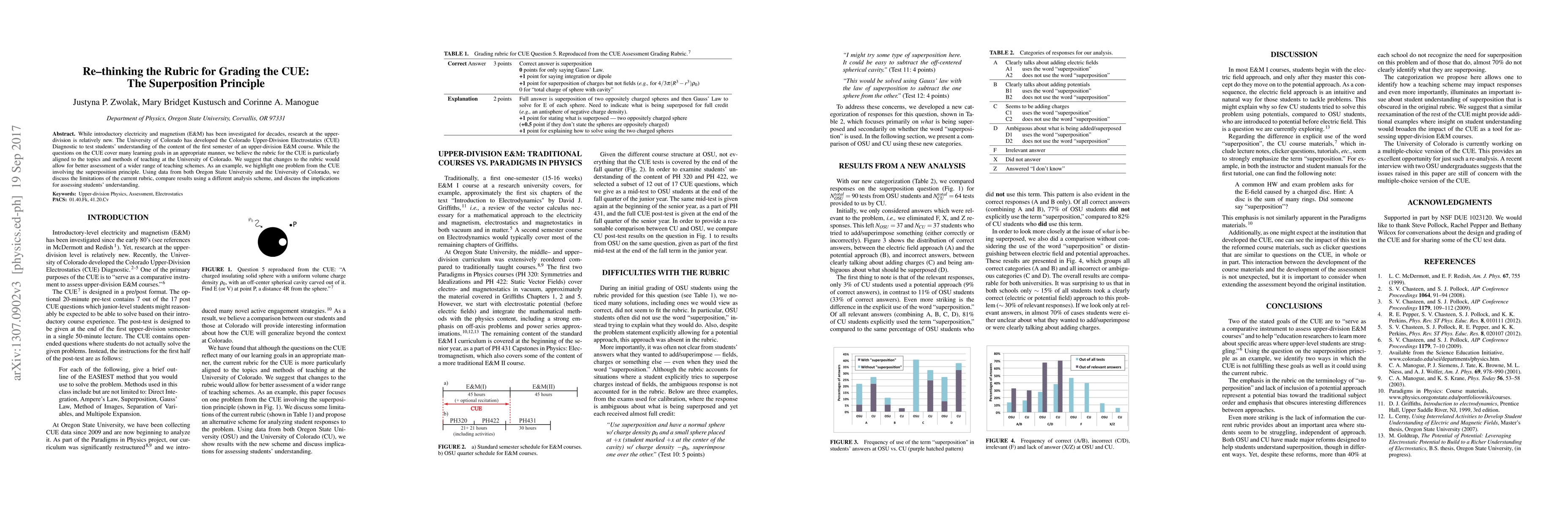 While introductory electricity and magnetism (E&M) has been investigated for decades, research at the upper-division is relatively new. The University of Colorado has developed the Colorado Upper-Division Electrostatics (CUE) Diagnostic to test students' understanding of the content of the first semester of an upper-division E&M course. While the questions on the CUE cover many learning goals in an appropriate manner, we believe the rubric for the CUE is particularly aligned to the topics and methods of teaching at the University of Colorado. We suggest that changes to the rubric would allow for better assessment of a wider range of teaching schemes. As an example, we highlight one problem from the CUE involving the superposition principle. Using data from both Oregon State University and the University of Colorado, we discuss the limitations of the current rubric, compare results using a different analysis scheme, and discuss the implications for assessing students' understanding.