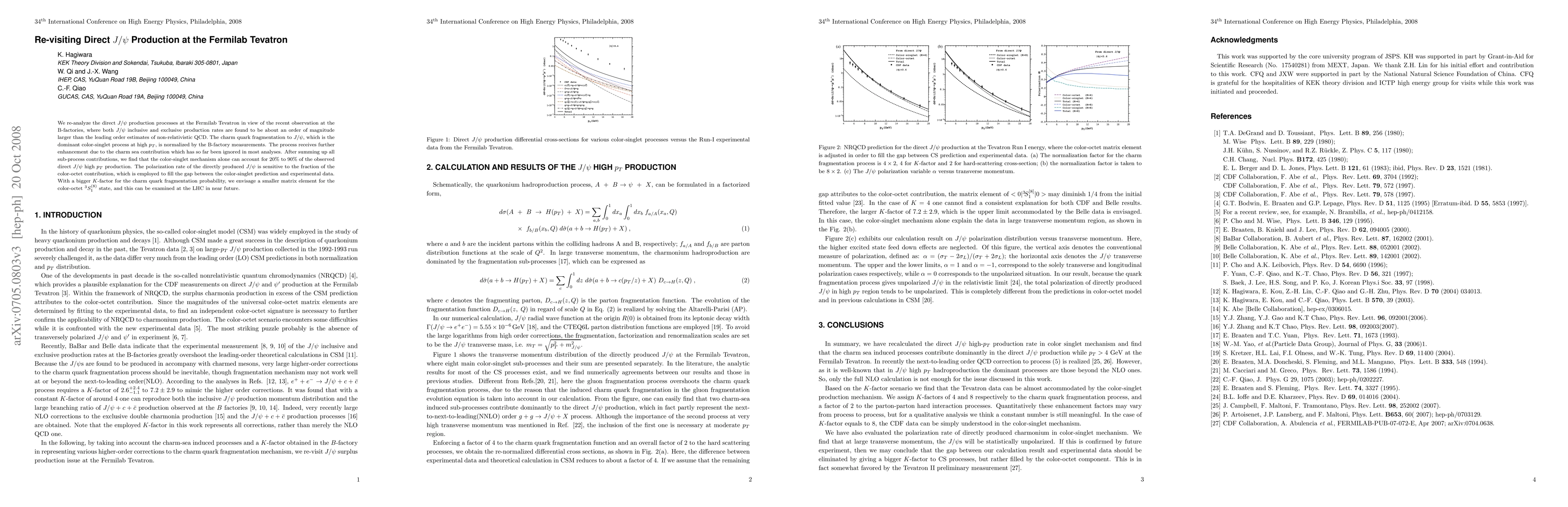 Researchers re-analyze direct $J/ heta$ production at the Fermilab Tevatron, finding that color-singlet mechanisms can account for 20-90% of observed high $p_T$ production rates.