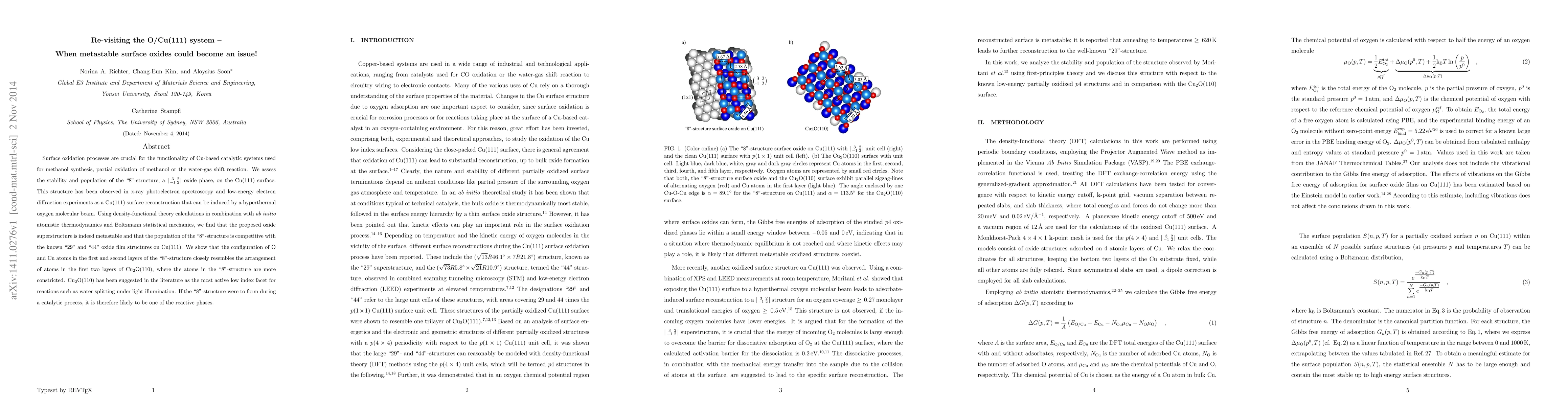 This paper investigates the stability and population of a metastable "8"-structure oxide phase on Cu(111) using density-functional theory and statistical mechanics. The findings suggest that this oxide phase, similar to the active Cu$_2$O(110) facet, could be a competitive reactive phase in Cu-based catalytic systems.