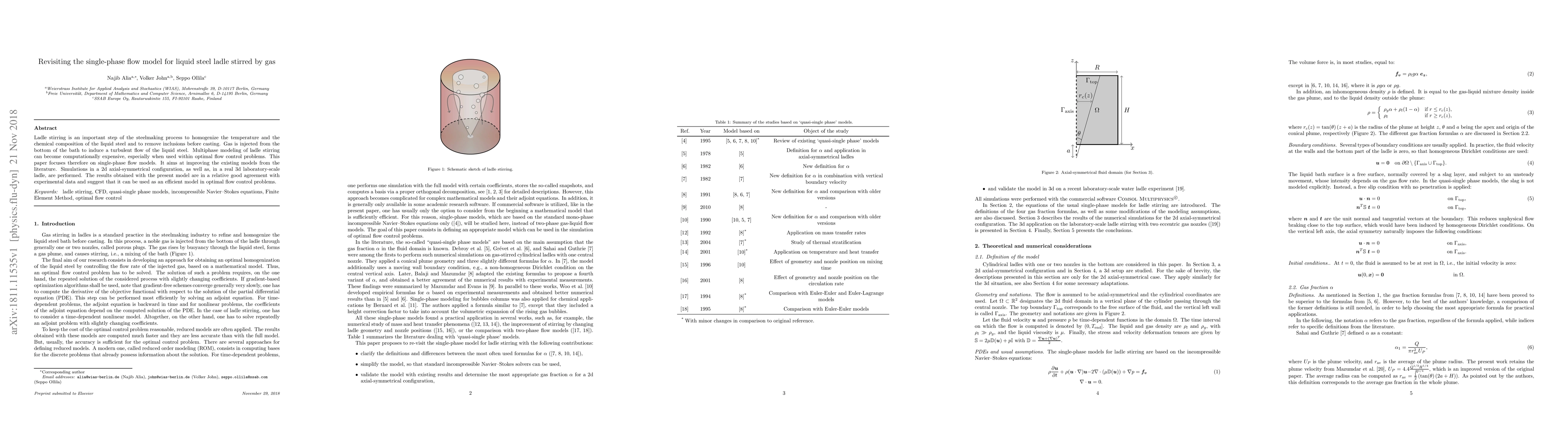 Ladle stirring is an important step of the steelmaking process to homogenize the temperature and the chemical composition of the liquid steel and to remove inclusions before casting. Gas is injected from the bottom of the bath to induce a turbulent flow of the liquid steel. Multiphase modeling of ladle stirring can become computationally expensive, especially when used within optimal flow control problems. This paper focuses therefore on single-phase flow models. It aims at improving the existing models from the literature. Simulations in a 2d axial-symmetrical configuration, as well as, in a real 3d laboratory-scale ladle, are performed. The results obtained with the present model are in a relative good agreement with experimental data and suggest that it can be used as an efficient model in optimal flow control problems.