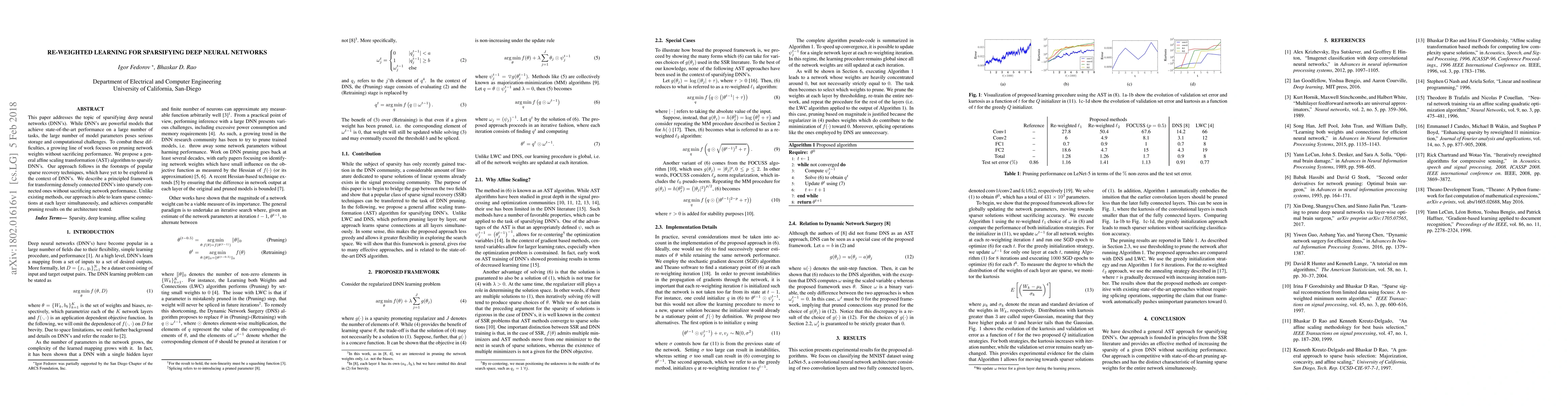 This paper proposes a novel affine scaling transformation (AST) algorithm to sparsify deep neural networks (DNNs) while maintaining performance. Unlike existing methods, the AST algorithm learns sparse connections layer-by-layer, achieving comparable pruning results.