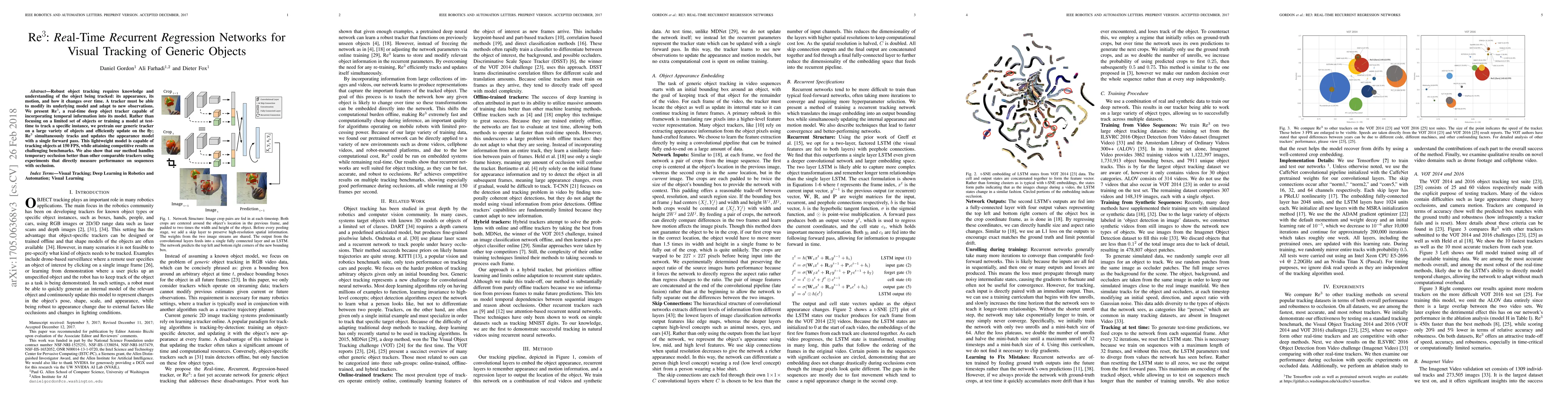 Robust object tracking requires knowledge and understanding of the object being tracked: its appearance, its motion, and how it changes over time. A tracker must be able to modify its underlying model and adapt to new observations. We present Re3, a real-time deep object tracker capable of incorporating temporal information into its model. Rather than focusing on a limited set of objects or training a model at test-time to track a specific instance, we pretrain our generic tracker on a large variety of objects and efficiently update on the fly; Re3 simultaneously tracks and updates the appearance model with a single forward pass. This lightweight model is capable of tracking objects at 150 FPS, while attaining competitive results on challenging benchmarks. We also show that our method handles temporary occlusion better than other comparable trackers using experiments that directly measure performance on sequences with occlusion.