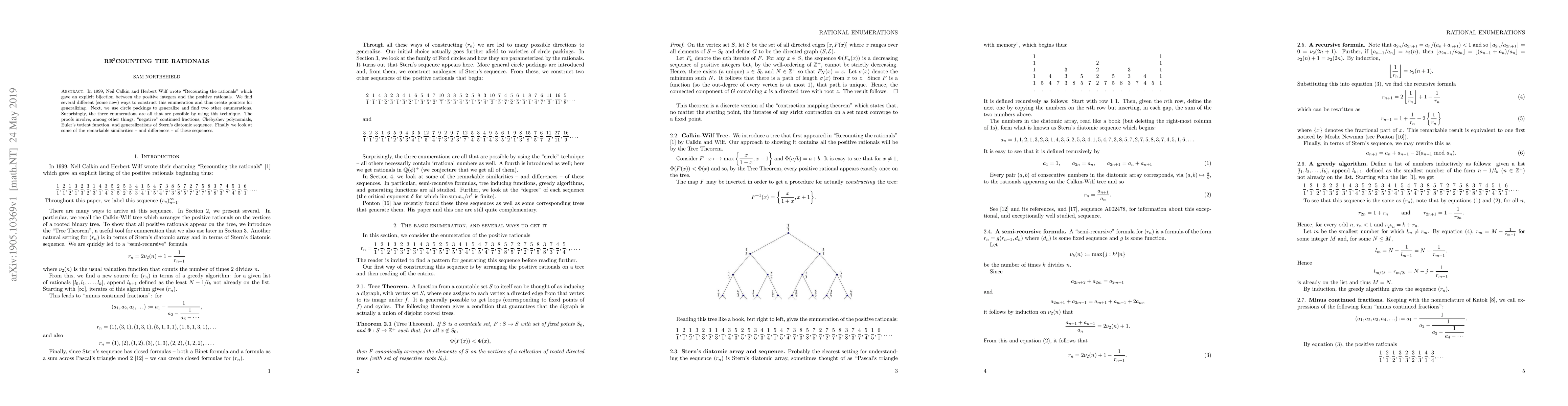 In 1999, Neil Calkin and Herbert Wilf wrote "Recounting the rationals" which gave an explicit bijection between the positive integers and the positive rationals. We find several different (some new) ways to construct this enumeration and thus create pointers for generalizing. Next, we use circle packings to generalize and find two other enumerations. Surprisingly, the three enumerations are all that are possible by using this technique. The proofs involve, among other things, "negative" continued fractions, Chebyshev polynomials, Euler's totient function, and generalizations of Stern's diatomic sequence. Finally we look at some of the remarkable similarities -- and differences -- of these sequences.