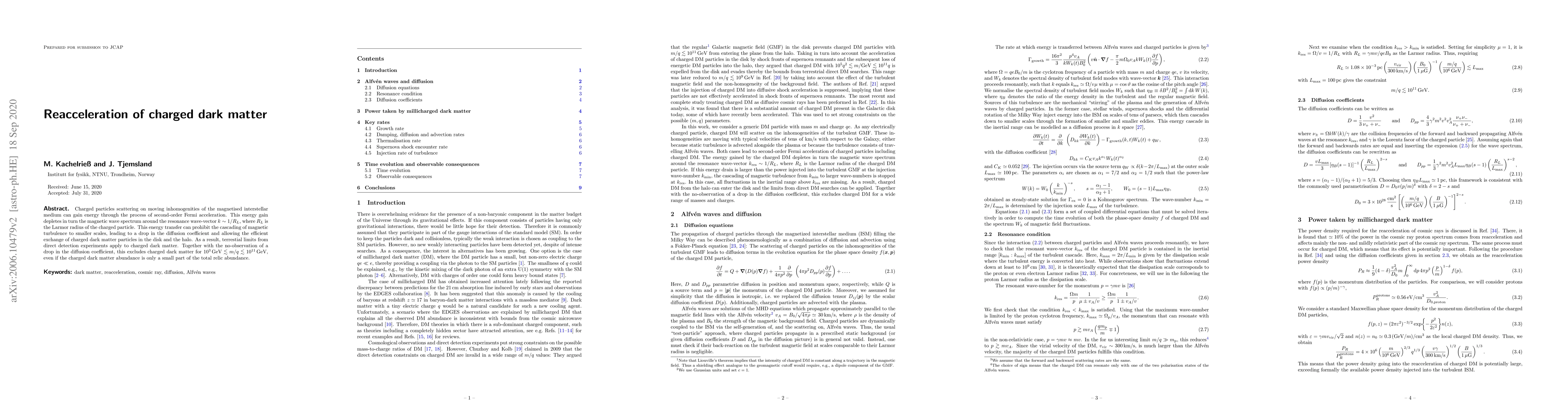 Charged particles scattering on moving inhomogenities of the magnetised interstellar medium can gain energy through the process of second-order Fermi acceleration. This energy gain depletes in turn the magnetic wave spectrum around the resonance wave-vector $k\sim 1/R_L$, where $R_L$ is the Larmor radius of the charged particle. This energy transfer can prohibit the cascading of magnetic turbulence to smaller scales, leading to a drop in the diffusion coefficient and allowing the efficient exchange of charged dark matter particles in the disk and the halo. As a result, terrestial limits from direct detection experiments apply to charged dark matter. Together with the no-observation of a drop in the diffusion coefficient, this excludes charged dark matter for $10^3 GeV\lesssim m/q \lesssim 10^{11} GeV$, even if the charged dark matter abundance is only a small part of the total relic abundance.