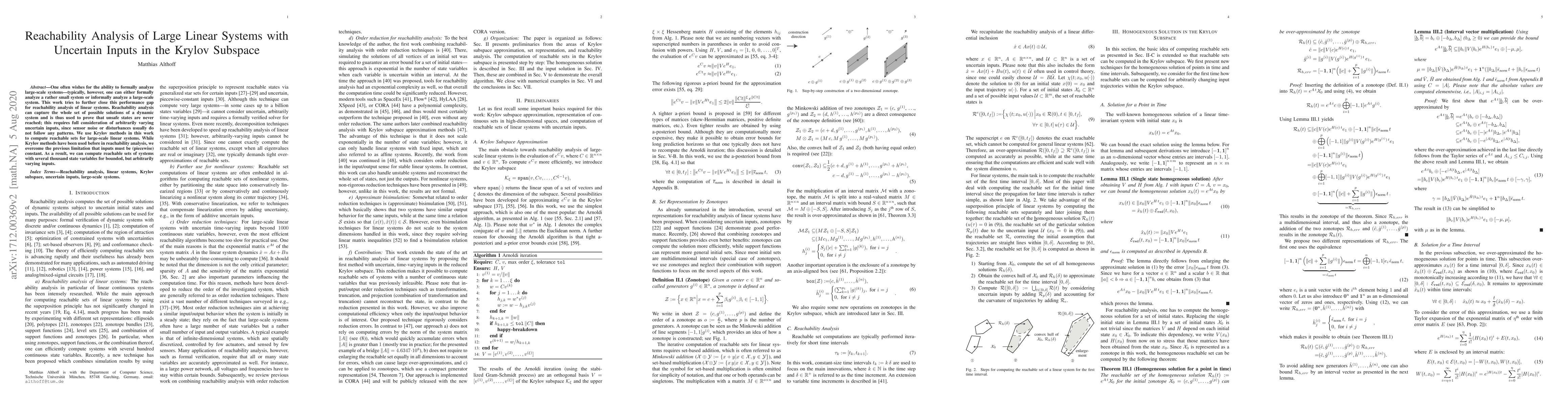 One often wishes for the ability to formally analyze large-scale systems---typically, however, one can either formally analyze a rather small system or informally analyze a large-scale system. This work tries to further close this performance gap for reachability analysis of linear systems. Reachability analysis can capture the whole set of possible solutions of a dynamic system and is thus used to prove that unsafe states are never reached; this requires full consideration of arbitrarily varying uncertain inputs, since sensor noise or disturbances usually do not follow any patterns. We use Krylov methods in this work to compute reachable sets for large-scale linear systems. While Krylov methods have been used before in reachability analysis, we overcome the previous limitation that inputs must be (piecewise) constant. As a result, we can compute reachable sets of systems with several thousand state variables for bounded, but arbitrarily varying inputs.
