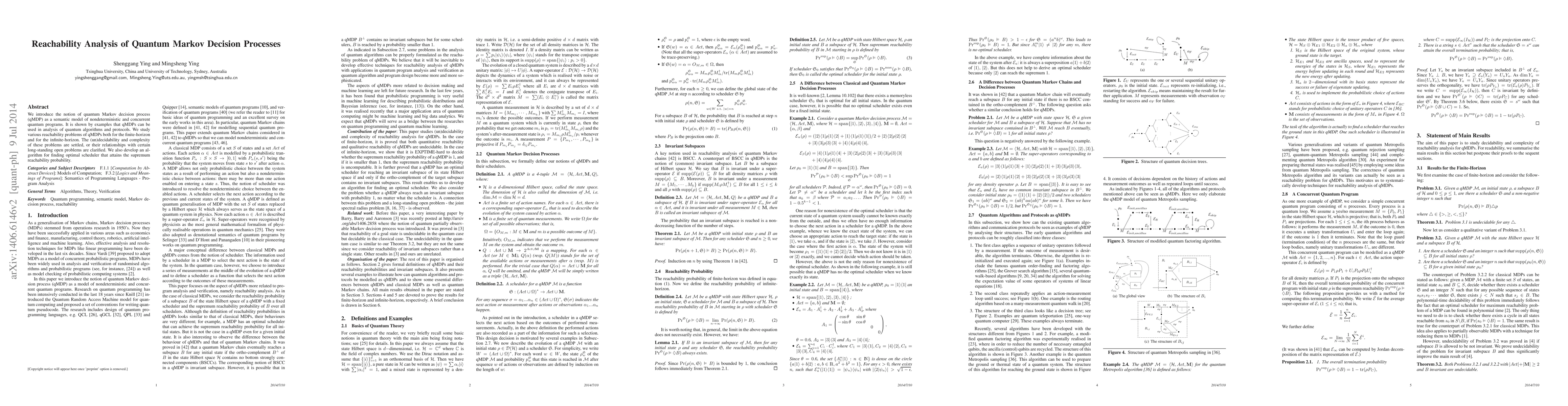 This paper introduces quantum Markov decision processes (qMDPs) as a model for analyzing quantum algorithms and protocols, exploring reachability problems in both finite- and infinite-horizon scenarios. It establishes the (un)decidability and complexity of these problems, and proposes an algorithm for finding optimal schedulers maximizing reachability probability.