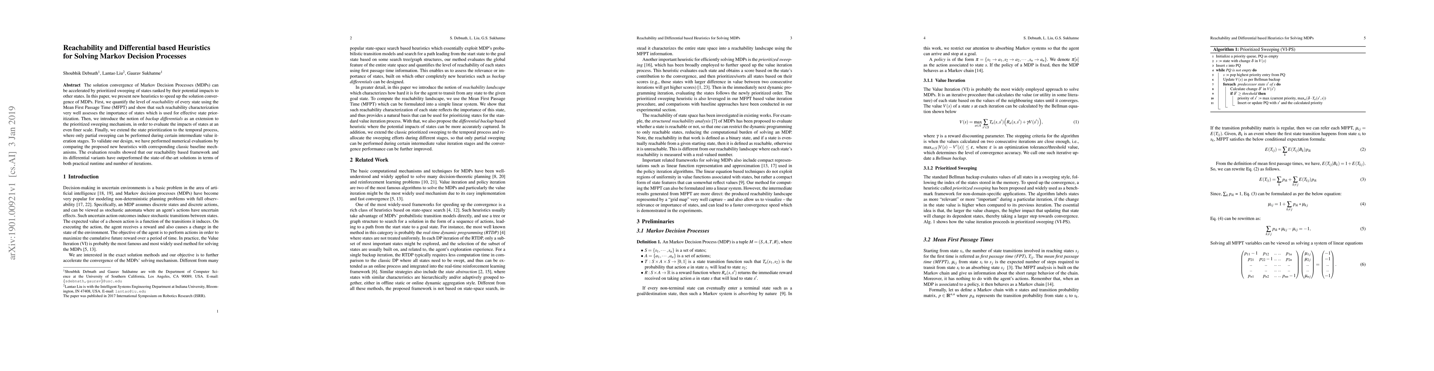 The solution convergence of Markov Decision Processes (MDPs) can be accelerated by prioritized sweeping of states ranked by their potential impacts to other states. In this paper, we present new heuristics to speed up the solution convergence of MDPs. First, we quantify the level of reachability of every state using the Mean First Passage Time (MFPT) and show that such reachability characterization very well assesses the importance of states which is used for effective state prioritization. Then, we introduce the notion of backup differentials as an extension to the prioritized sweeping mechanism, in order to evaluate the impacts of states at an even finer scale. Finally, we extend the state prioritization to the temporal process, where only partial sweeping can be performed during certain intermediate value iteration stages. To validate our design, we have performed numerical evaluations by comparing the proposed new heuristics with corresponding classic baseline mechanisms. The evaluation results showed that our reachability based framework and its differential variants have outperformed the state-of-the-art solutions in terms of both practical runtime and number of iterations.