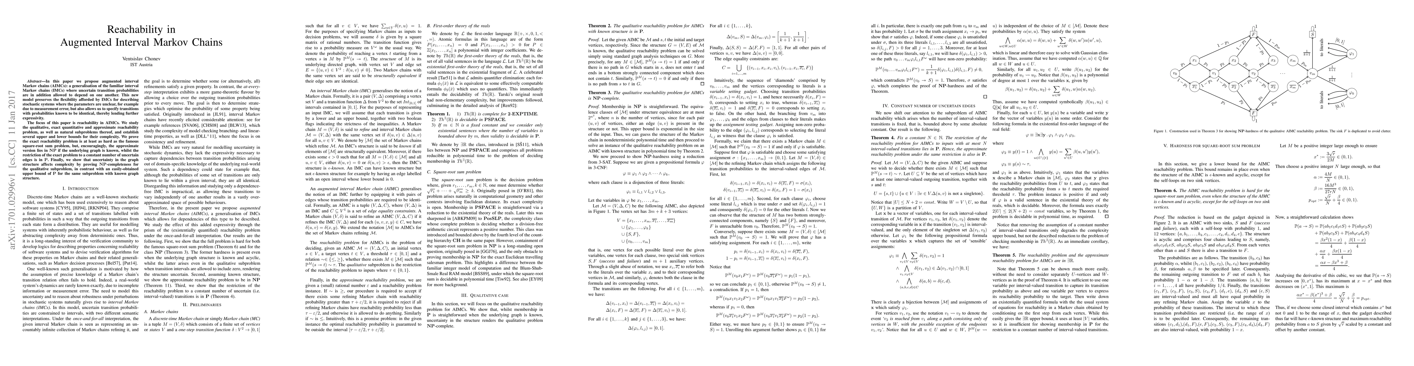This paper introduces augmented interval Markov chains (AIMCs) as a generalization of interval Markov chains, allowing transition probabilities to depend on each other. It studies reachability problems within AIMCs, establishing complexity bounds and proving the exact reachability problem is at least as hard as the square-root sum problem, while the approximate version is in NP.