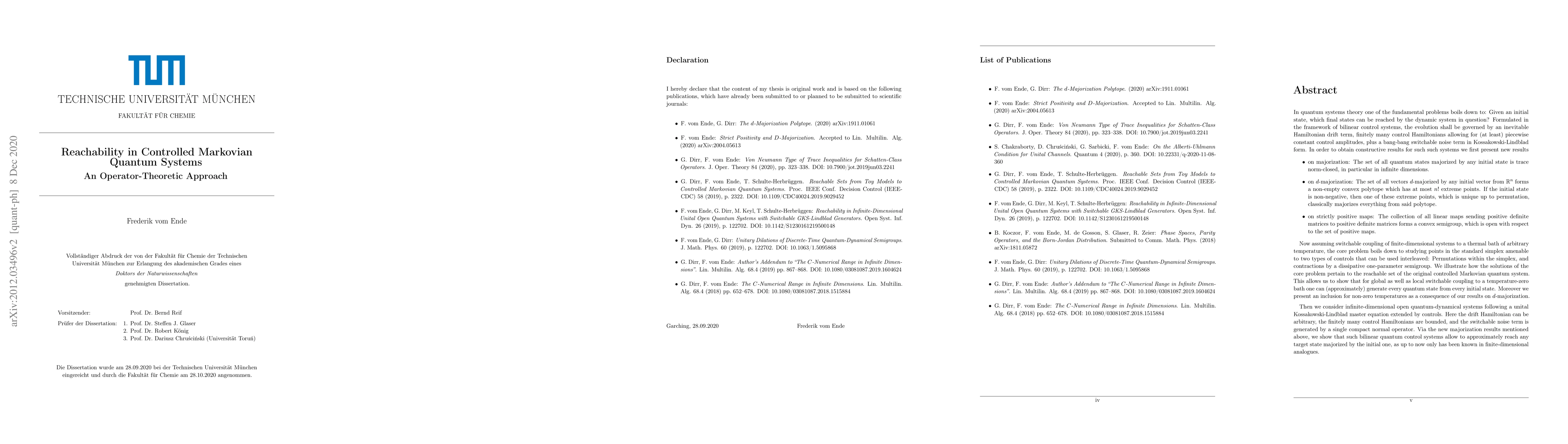 Researchers show that controlled Markovian quantum systems can reach any target state from an initial state with arbitrary precision, using a combination of control strategies and majorization results.