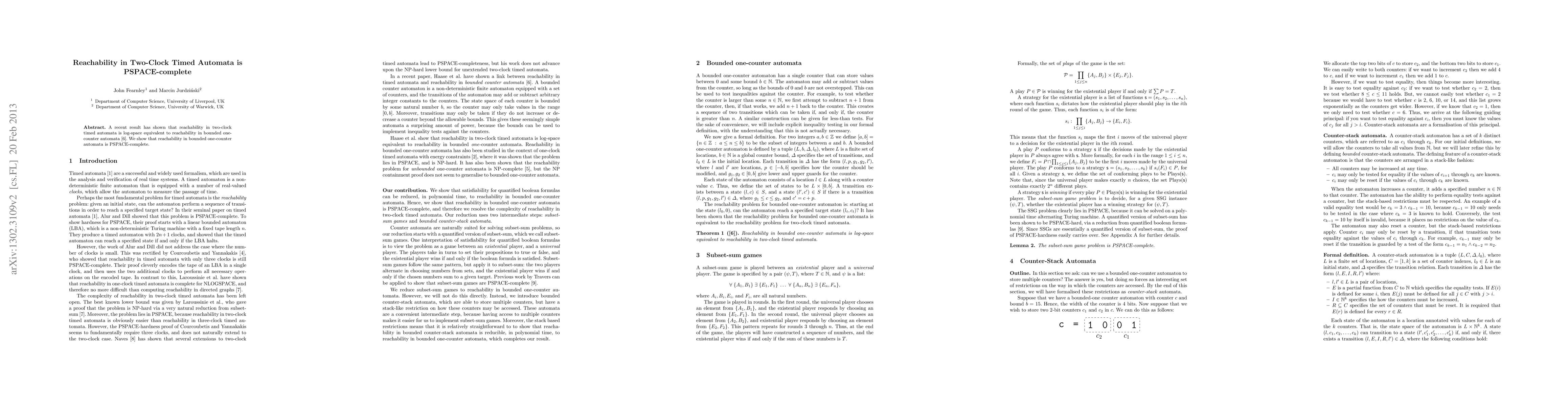 Summary: Haase et al. established log-space equivalence between reachability in two-clock timed automata and one-counter automata. This paper demonstrates that reachability in bounded one-counter automata is PSPACE-complete.