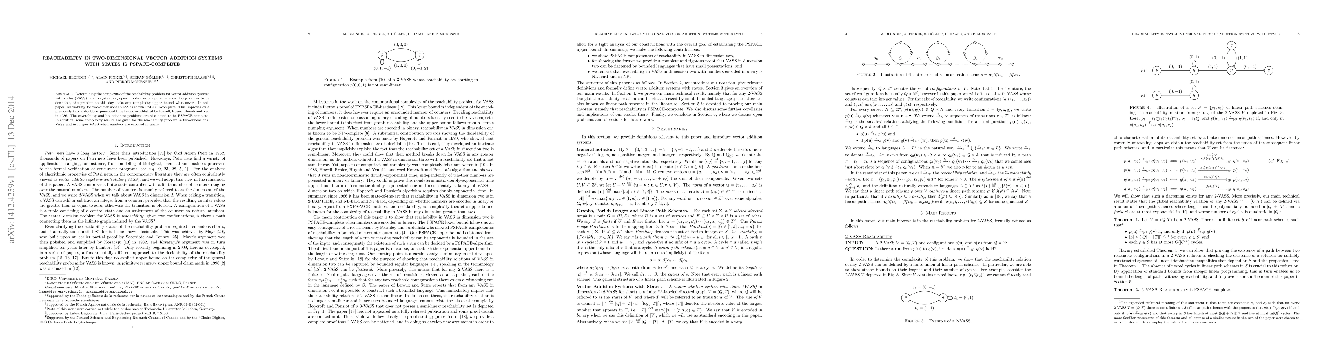 Determining the complexity of the reachability problem for vector addition systems with states (VASS) is a long-standing open problem in computer science. Long known to be decidable, the problem to this day lacks any complexity upper bound whatsoever. In this paper, reachability for two-dimensional VASS is shown PSPACE-complete. This improves on a previously known doubly exponential time bound established by Howell, Rosier, Huynh and Yen in 1986. The coverability and boundedness problems are also noted to be PSPACE-complete. In addition, some complexity results are given for the reachability problem in two-dimensional VASS and in integer VASS when numbers are encoded in unary.