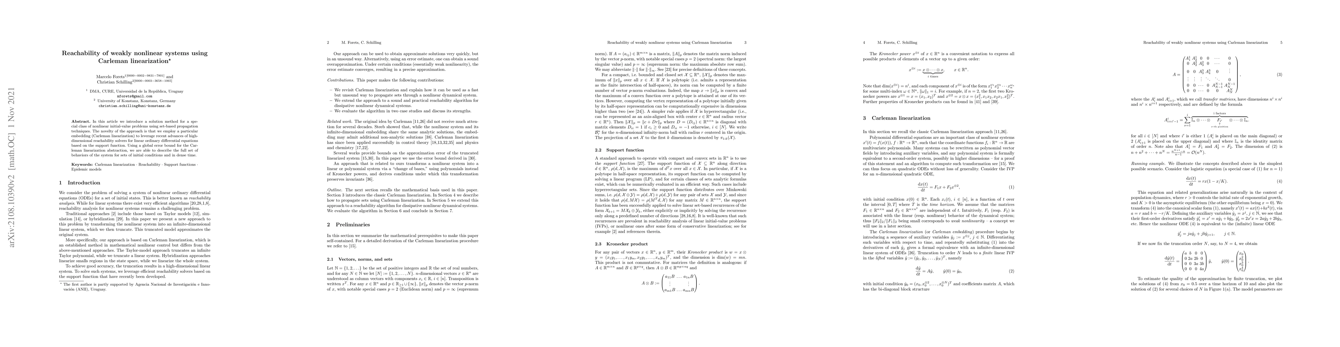 This paper proposes a method for solving nonlinear initial-value problems using Carleman linearization, which embeds the system into a higher-dimensional linear space. It leverages high-dimensional reachability solvers to describe the full set of system behaviors for given initial conditions over time.