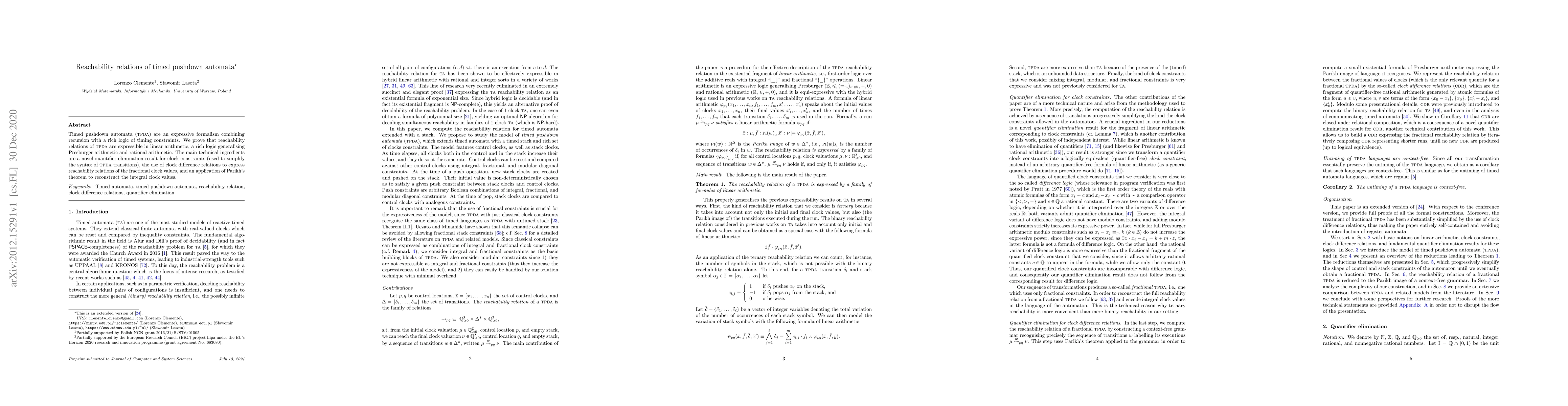 This paper demonstrates that reachability relations in timed pushdown automata (TPDA) can be expressed using linear arithmetic. It introduces a new quantifier elimination technique for clock constraints and leverages clock difference relations to manage fractional clock values, ultimately reconstructing integral clock values via Parikh's theorem.