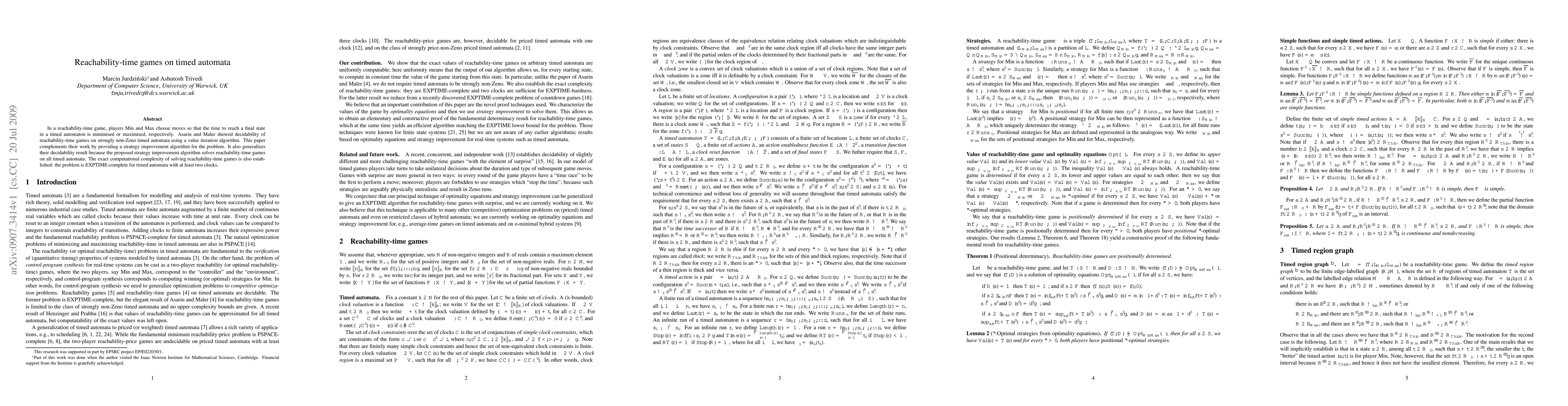 In a reachability-time game, players Min and Max choose moves so that the time to reach a final state in a timed automaton is minimised or maximised, respectively. Asarin and Maler showed decidability of reachability-time games on strongly non-Zeno timed automata using a value iteration algorithm. This paper complements their work by providing a strategy improvement algorithm for the problem. It also generalizes their decidability result because the proposed strategy improvement algorithm solves reachability-time games on all timed automata. The exact computational complexity of solving reachability-time games is also established: the problem is EXPTIME-complete for timed automata with at least two clocks.