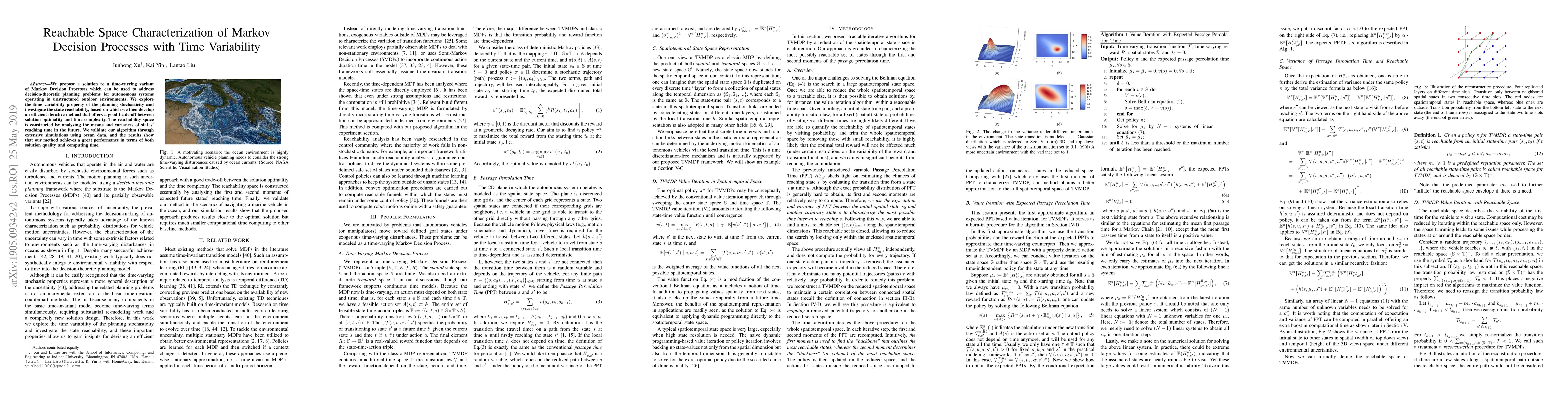 We propose a solution to a time-varying variant of Markov Decision Processes which can be used to address decision-theoretic planning problems for autonomous systems operating in unstructured outdoor environments. We explore the time variability property of the planning stochasticity and investigate the state reachability, based on which we then develop an efficient iterative method that offers a good trade-off between solution optimality and time complexity. The reachability space is constructed by analyzing the means and variances of states' reaching time in the future. We validate our algorithm through extensive simulations using ocean data, and the results show that our method achieves a great performance in terms of both solution quality and computing time.