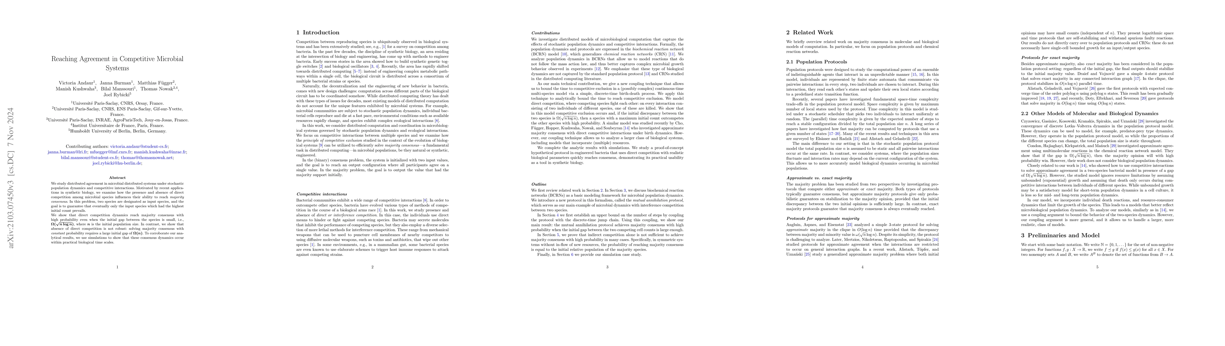 Researchers found that direct competition in microbial systems can efficiently solve majority consensus with a small initial gap between species, while indirect competition is not efficient for large gaps. This breakthrough has implications for the development of synthetic microbial systems.