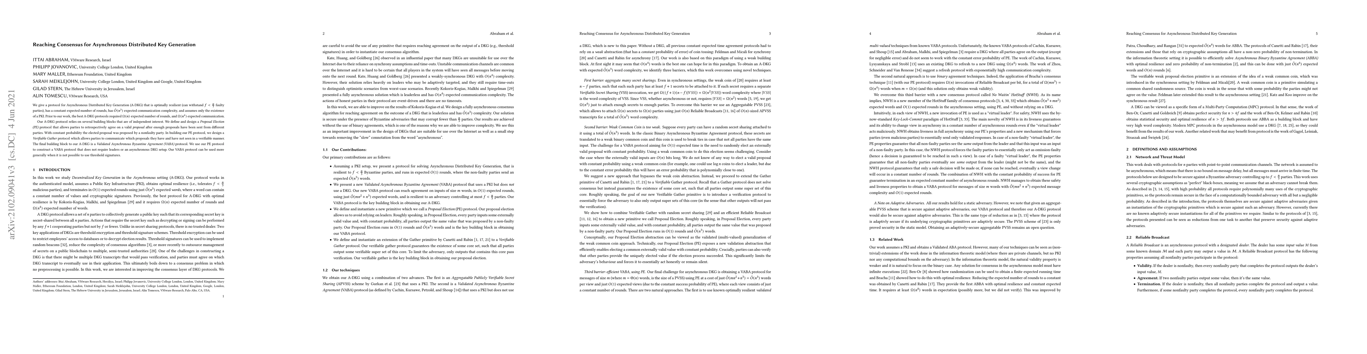 Researchers develop a highly resilient protocol for Asynchronous Distributed Key Generation that can withstand up to 2/3 faulty parties with minimal communication complexity.