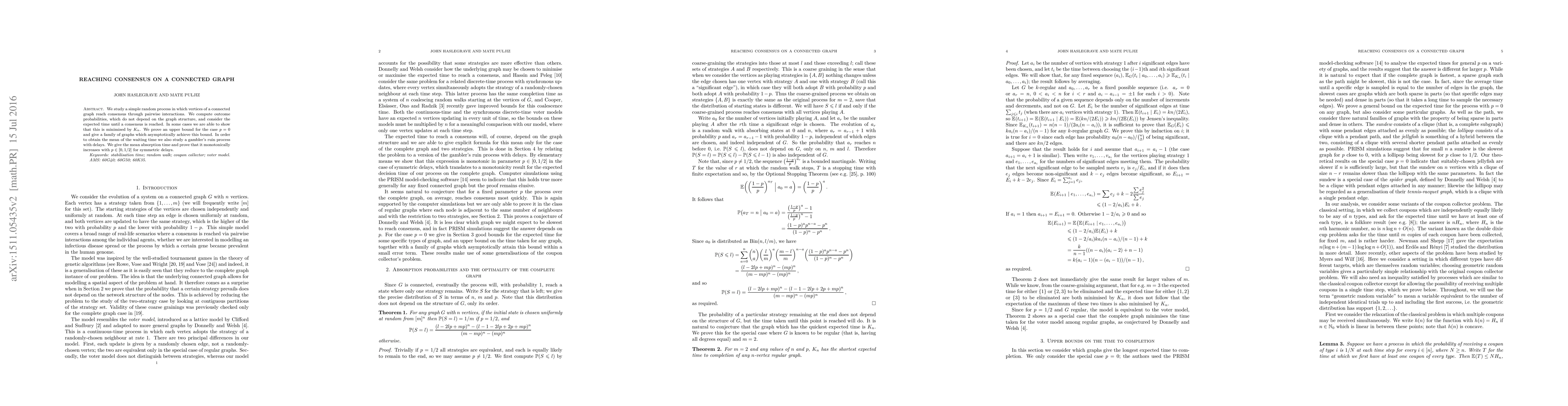 Researchers studied how a connected graph reaches consensus through pairwise interactions, finding that some graphs minimize the time to reach consensus, while others have an upper bound for this time.