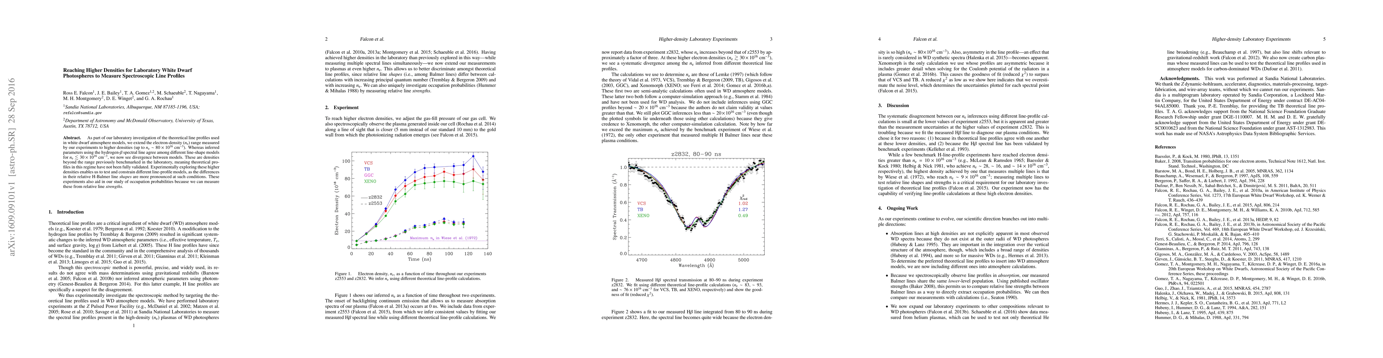 This research extends laboratory measurements of electron-density in white dwarf photospheres to higher densities, up to $n_{e}\sim80\times10^{16}$ cm$^{-3}$, revealing divergence in hydrogen-$\beta$ spectral line models. These experiments validate theoretical line profiles and study occupation probabilities by measuring relative line strengths.