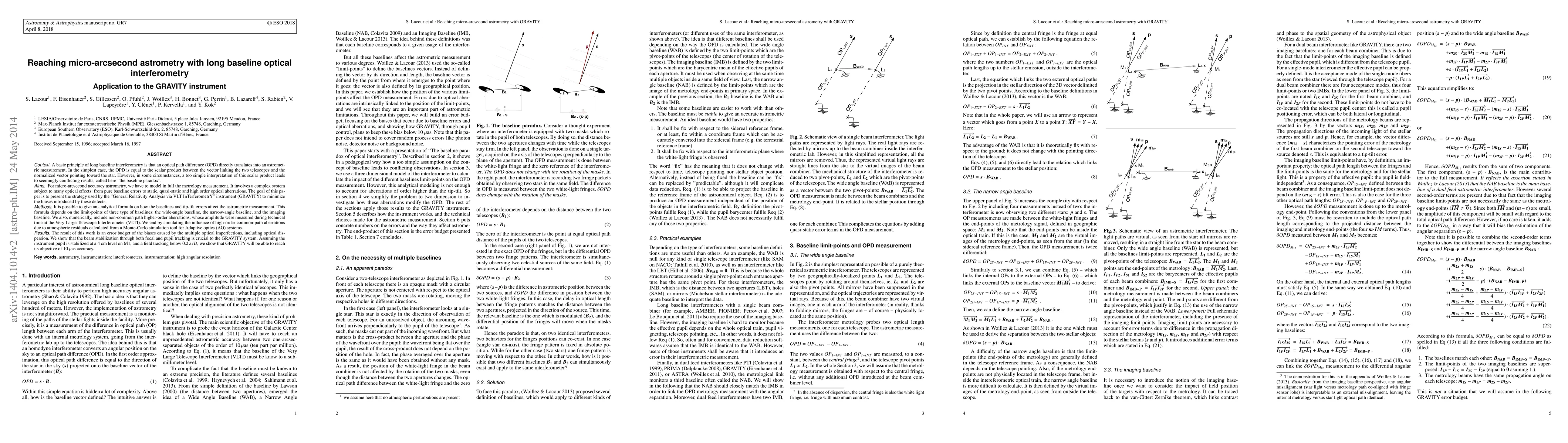 A basic principle of long baseline interferometry is that an optical path difference (OPD) directly translates into an astrometric measurement. In the simplest case, the OPD is equal to the scalar product between the vector linking the two telescopes and the normalized vector pointing toward the star. However, a too simple interpretation of this scalar product leads to seemingly conflicting results, called here "the baseline paradox". For micro-arcsecond accuracy astrometry, we have to model in full the metrology measurement. It involves a complex system subject to many optical effects: from pure baseline errors to static, quasi-static and high order optical aberrations. The goal of this paper is to present the strategy used by the "General Relativity Analysis via VLT InTerferometrY" instrument (GRAVITY) to minimize the biases introduced by these defects. It is possible to give an analytical formula on how the baselines and tip-tilt errors affect the astrometric measurement. This formula depends on the limit-points of three type of baselines: the wide-angle baseline, the narrow-angle baseline, and the imaging baseline. We also, numerically, include non-common path higher-order aberrations, whose amplitude were measured during technical time at the Very Large Telescope Interferometer. We end by simulating the influence of high-order common-path aberrations due to atmospheric residuals calculated from a Monte-Carlo simulation tool for Adaptive optics systems. The result of this work is an error budget of the biases caused by the multiple optical imperfections, including optical dispersion. We show that the beam stabilization through both focal and pupil tracking is crucial to the GRAVITY system. Assuming the instrument pupil is stabilized at a 4 cm level on M1, and a field tracking below 0.2$\lambda/D$, we show that GRAVITY will be able to reach its objective of 10$\mu$as accuracy.