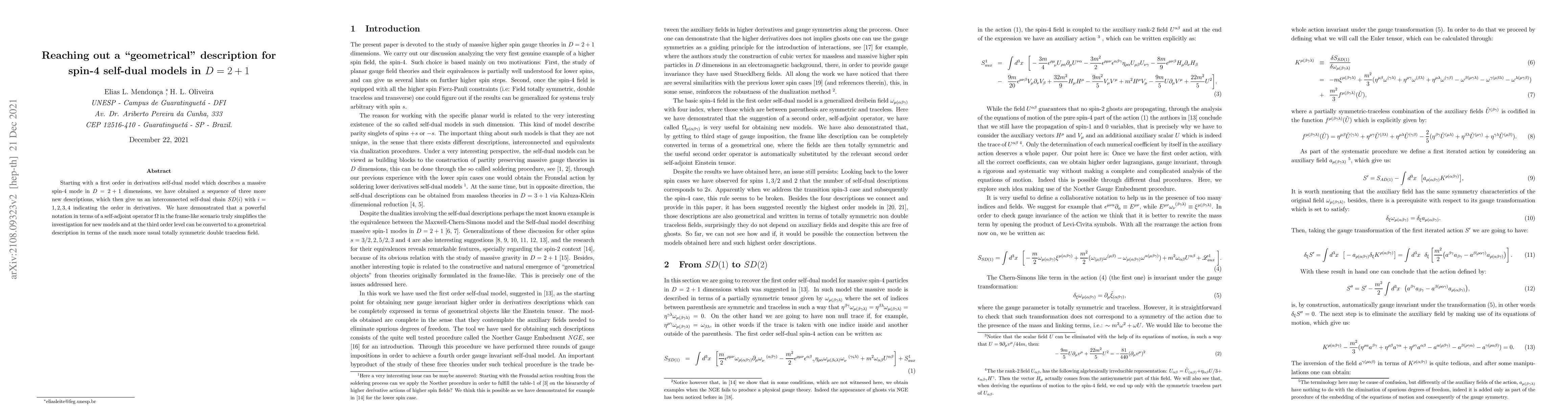 Researchers have discovered a new way to describe massive spin-4 models in 2+1 dimensions using a self-dual chain of field theories with increasing order in derivatives.