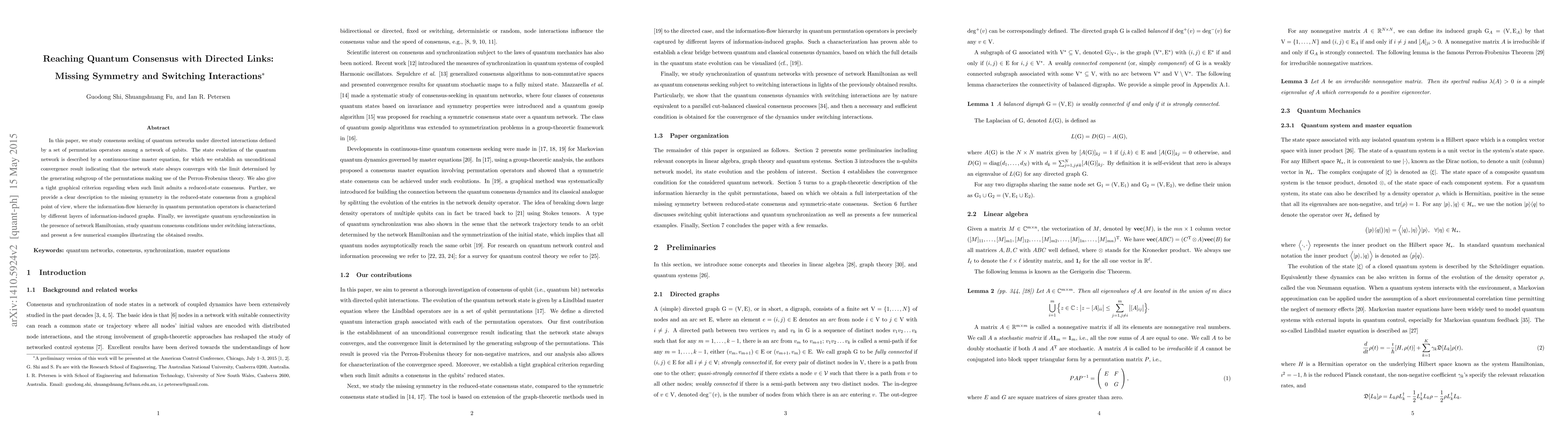 This paper investigates the consensus dynamics of quantum networks under directed interactions using permutation operators, proving unconditional convergence and identifying conditions for reduced-state consensus. It also explores the missing symmetry in consensus and examines quantum synchronization and consensus conditions under switching interactions.