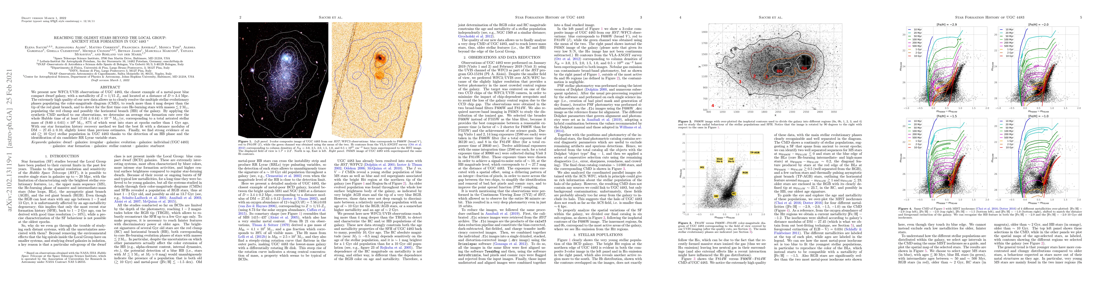 We present new WFC3/UVIS observations of UGC 4483, the closest example of a metal-poor blue compact dwarf galaxy, with a metallicity of $Z \simeq 1/15\ Z_{\odot}$ and located at a distance of $D \simeq 3.4$ Mpc. The extremely high quality of our new data allows us to clearly resolve the multiple stellar evolutionary phases populating the color-magnitude diagram (CMD), to reach more than 4 mag deeper than the tip of the red giant branch, and to detect for the first time core He-burning stars with masses $\lesssim 2$ M$_{\odot}$, populating the red clump and possibly the horizontal branch (HB) of the galaxy. By applying the synthetic CMD method to our observations, we determine an average star formation rate over the whole Hubble time of at least $(7.01\pm0.44) \times 10^{-4}$ $\mathrm{M_{\odot}/yr}$, corresponding to a total astrated stellar mass of $(9.60\pm0.61)\times 10^6$ $\mathrm{M_{\odot}}$, 87% of which went into stars at epochs earlier than 1 Gyr ago. With our star formation history recovery method we find the best fit with a distance modulus of DM = $27.45\pm0.10$, slightly lower than previous estimates. Finally, we find strong evidence of an old ($\gtrsim 10$ Gyr) stellar population in UGC 4483 thanks to the detection of an HB phase and the identification of six candidate RR Lyrae variable stars.