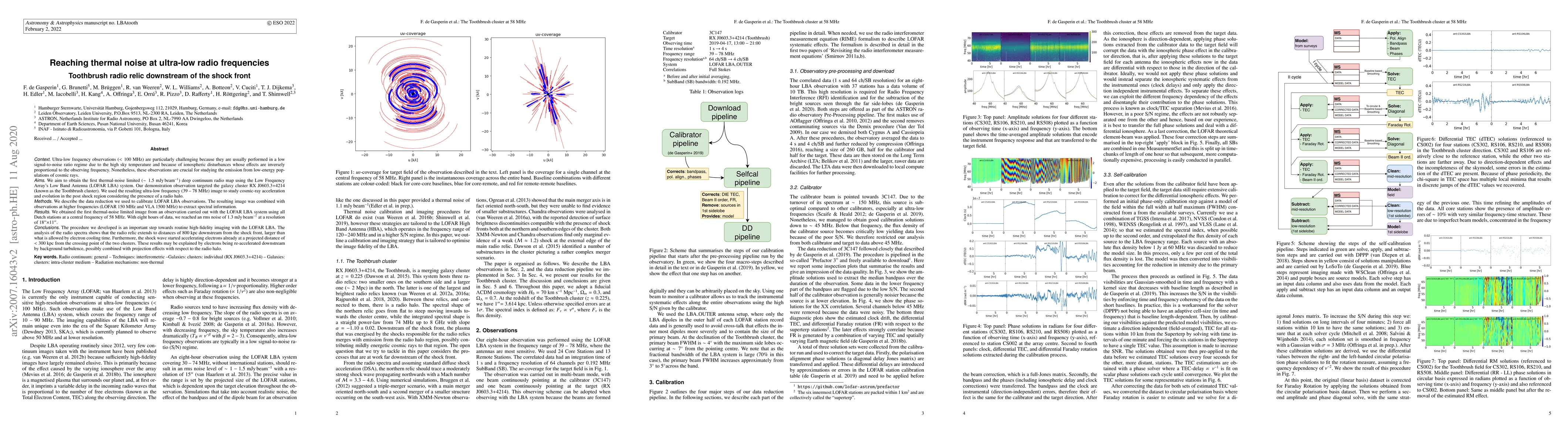 Ultra-low frequency observations (<100 MHz) are particularly challenging because they are usually performed in a low signal-to-noise ratio regime due to the high sky temperature and because of ionospheric disturbances whose effects are inversely proportional to the observing frequency. Nonetheless, these observations are crucial to study the emission from low-energy populations of cosmic rays. We aim to obtain the first thermal-noise limited (~ 1.5 mJy/beam) deep continuum radio map using the LOFAR Low Band Antenna (LBA) system. Our demonstration observation targeted the galaxy cluster RX J0603.3+4214 (the "Toothbrush" cluster). We used the resulting ultra-low frequency (58 MHz) image to study cosmic-ray acceleration and evolution in the post shock region, as well as their relation with the presence of a radio halo. We describe the data reduction we have used to calibrate LOFAR LBA observations. The resulting image is combined with observations at higher frequencies (LOFAR 150 MHz and VLA 1500 MHz) to extract spectral information. We obtained the first thermal-noise limited image from an observation carried out with the LOFAR LBA system using all Dutch stations at a central frequency of 58 MHz. With 8 hours of data, we reached an rms noise of 1.3 mJy/beam at a resolution of 18" x 11". The procedure we have developed is an important step forward towards routine high-fidelity imaging with the LOFAR LBA. The analysis of the radio spectra shows that the radio relic extends to distances of 800 kpc downstream from the shock front, larger than what allowed by electron cooling time. Furthermore, the shock wave started accelerating electrons already at a projected distance of <300 kpc from the crossing point of the two clusters. These results can be explained if electrons are reaccelerated downstream by background turbulence possibly combined with projection effects.