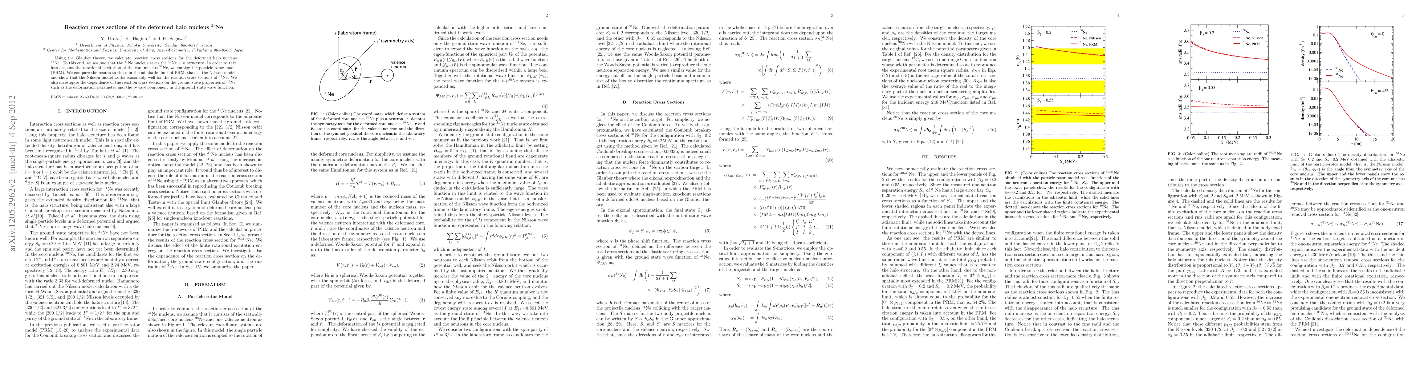 This paper calculates reaction cross sections for the deformed halo nucleus $^{31}$Ne using the Glauber theory and the particle-rotor model, comparing results to the Nilsson model. It finds that the Nilsson model provides a reasonable approximation for these cross sections and examines how ground state properties like deformation and p-wave components affect the results.