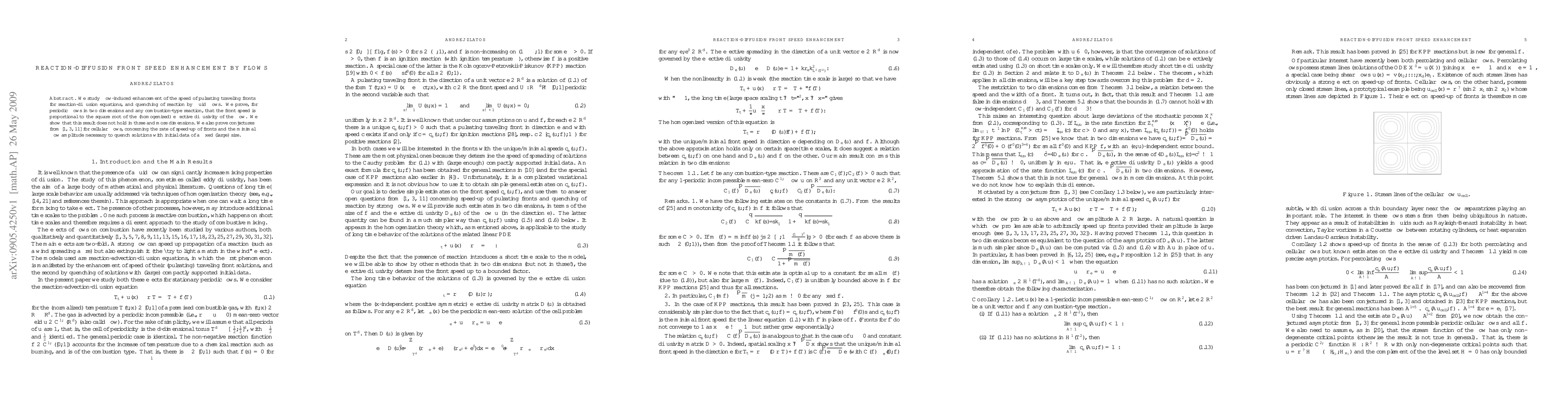 This paper investigates how fluid flows enhance the speed of pulsating traveling fronts in reaction-diffusion equations, demonstrating that for two-dimensional periodic flows and combustion-type reactions, the front speed is proportional to the square root of the effective diffusivity of the flow. It also disproves this proportionality in three or more dimensions and confirms conjectures regarding the speed-up rate and minimal flow amplitude for quenching solutions.