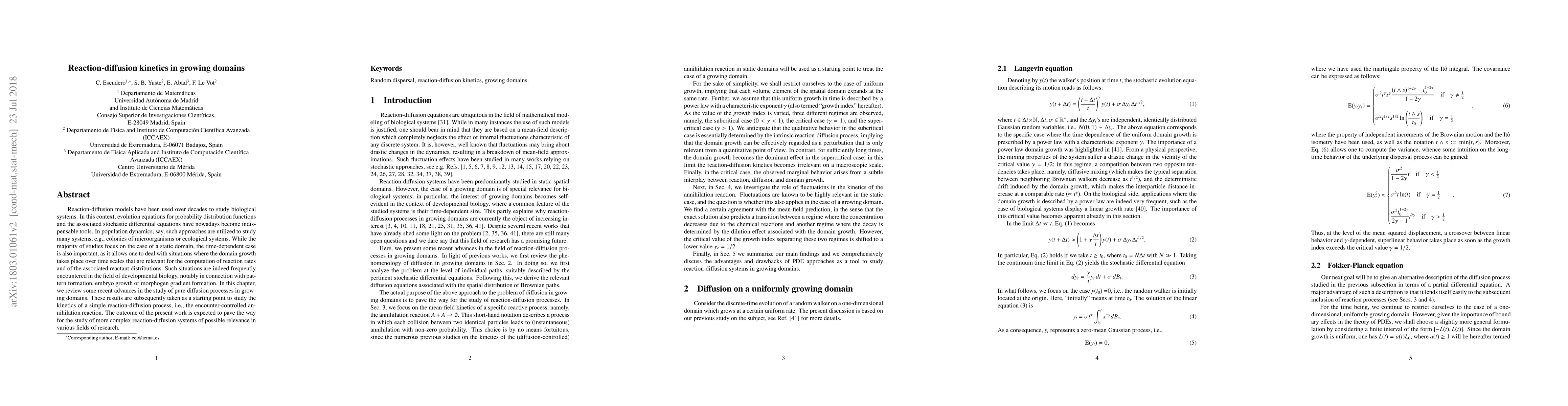 This paper reviews advances in reaction-diffusion models applied to growing domains, particularly focusing on pure diffusion processes. It also explores the kinetics of a simple reaction-diffusion reaction, anticipating broader implications for complex biological systems.
