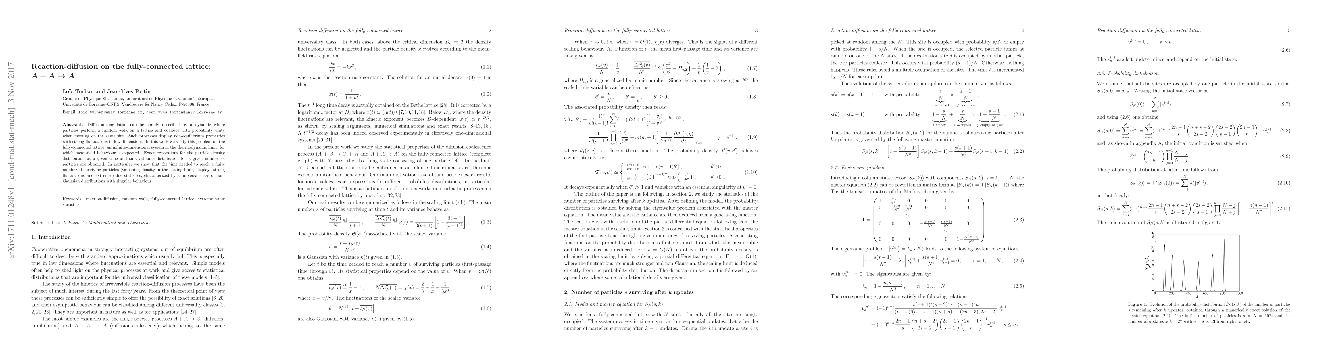 Diffusion-coagulation can be simply described by a dynamic where particles perform a random walk on a lattice and coalesce with probability unity when meeting on the same site. Such processes display non-equilibrium properties with strong fluctuations in low dimensions. In this work we study this problem on the fully-connected lattice, an infinite-dimensional system in the thermodynamic limit, for which mean-field behaviour is expected. Exact expressions for the particle density distribution at a given time and survival time distribution for a given number of particles are obtained. In particular we show that the time needed to reach a finite number of surviving particles (vanishing density in the scaling limit) displays strong fluctuations and extreme value statistics, characterized by a universal class of non-Gaussian distributions with singular behaviour.