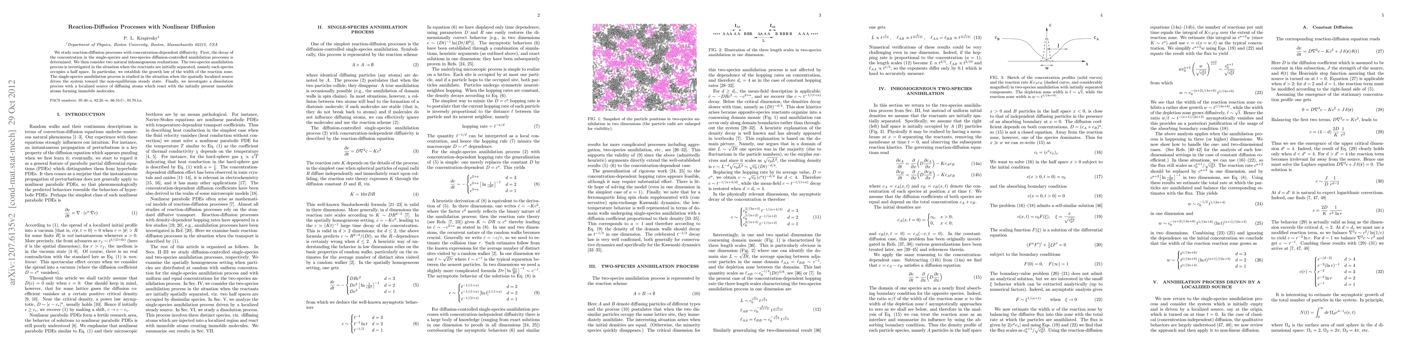 This paper investigates reaction-diffusion processes with nonlinear diffusion, focusing on decay patterns in single- and two-species annihilation processes and the growth of reaction zones when reactants are initially separated. It also examines a dissolution process with localized sources and immobile molecules.