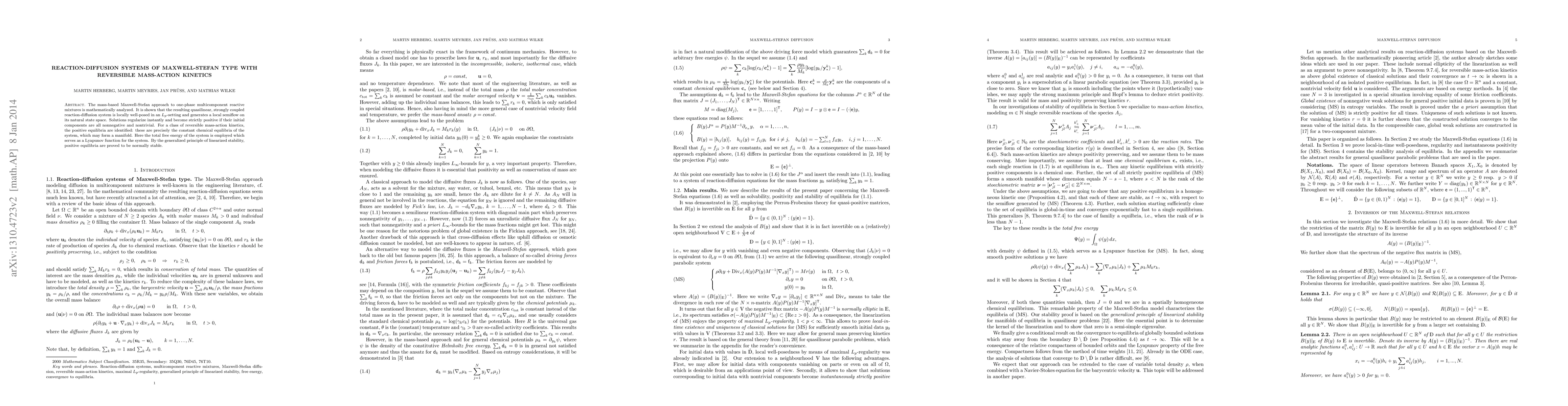 The mass-based Maxwell-Stefan approach to one-phase multicomponent reactive mixtures is mathematically analyzed. It is shown that the resulting quasilinear, strongly coupled reaction-diffusion system is locally well-posed in an $L_p$-setting and generates a local semiflow on its natural state space. Solutions regularize instantly and become strictly positive if their initial components are all nonnegative and nontrivial. For a class of reversible mass-action kinetics, the positive equilibria are identified: these are precisely the constant chemical equilibria of the system, which may form a manifold. Here the total free energy of the system is employed which serves as a Lyapunov function for the system. By the generalized principle of linearized stability, positive equilibria are proved to be normally stable.