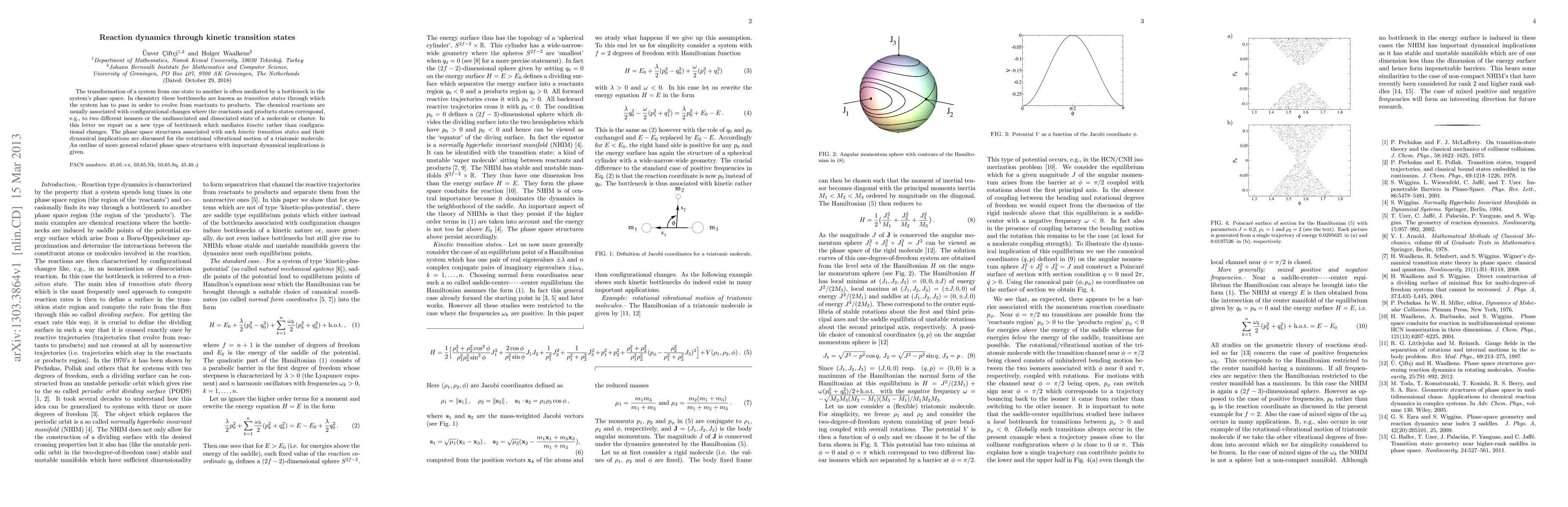 Researchers discovered a new type of bottleneck in chemical reactions called kinetic transition states, which mediate non-configurational changes in the system's phase space. This discovery has implications for understanding the dynamics of rotational-vibrational motion in triatomic molecules.