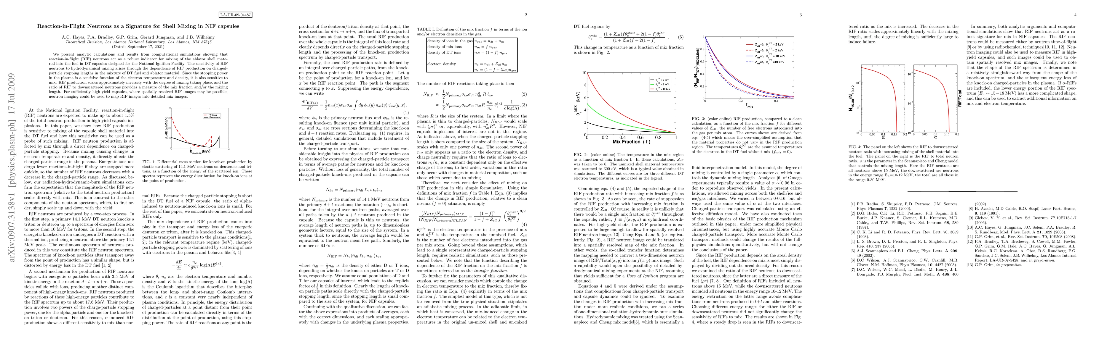 This paper demonstrates that reaction-in-flight neutrons serve as a reliable indicator for the mixing of ablator shell material into the fuel in DT capsules for the National Ignition Facility. The degree of mixing can be quantitatively assessed by the ratio of reaction-in-flight neutrons to downscattered neutrons, providing insights into the hydrodynamical mixing processes.