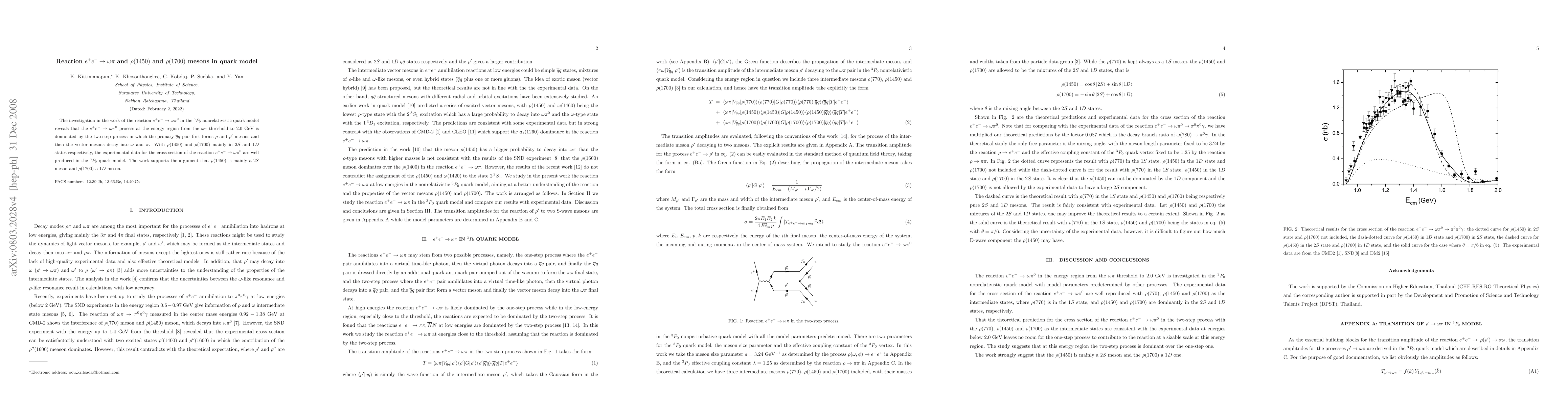 The 3P0 quark model predicts a two-step reaction process for electron-positron collisions with omega and pi mesons, which matches experimental data for cross-sections of these reactions.